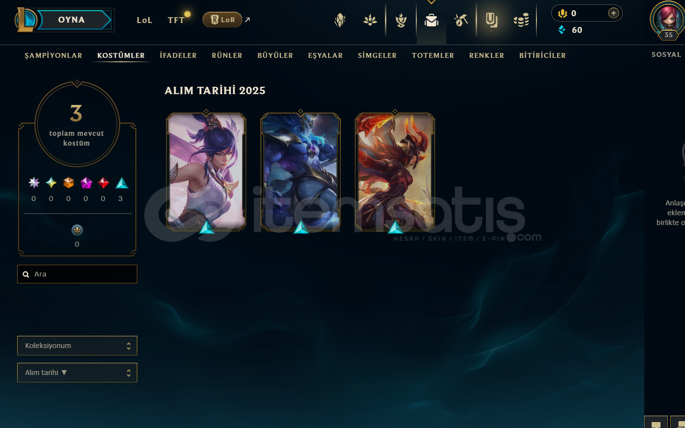 TR Unranked | 3 Kostüm - 30 Hero | LoL Hesap