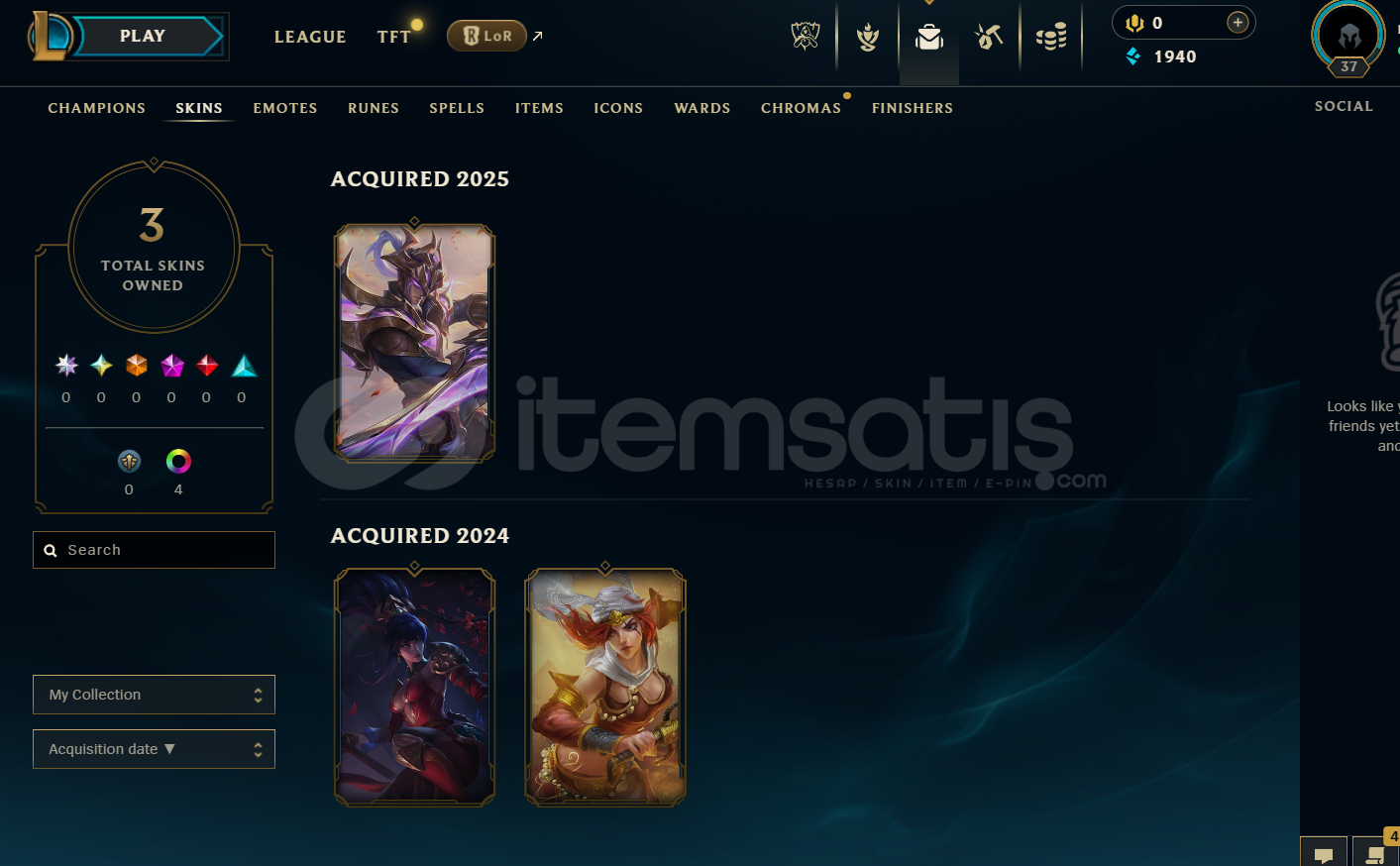 HESAP DETAYLARI:Hesap hiç ban yememiştir ve takdir seviyesi 3 dür.Hesap TR Unranked LoL Hesabıdır.İçerisinde 3 Kostüm 31 Hero ve 3 Adet İade Hakkı Mevcuttur.HESAP HAKKINDA:Kendi mail adresinize kayıt edebilir, etkinleştirmeyi kaldırabilir ve şifresini değiştirebilirsiniz.Hesaplarımızda hiç bir sıkıntı çıkmamaktadır.Herhangi bir sıkıntıda en iyi deste...