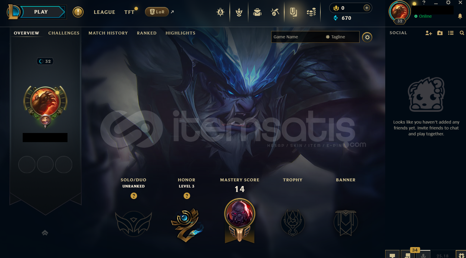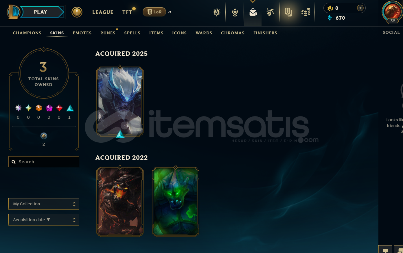 TR Unranked | 3 Kostüm - 33 Hero | LoL Hesap