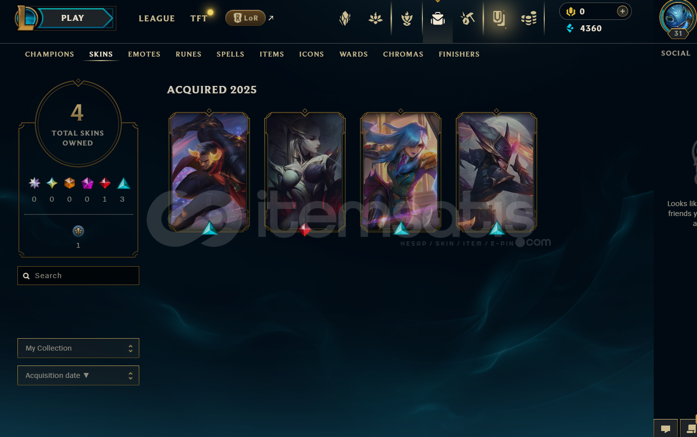 TR Unranked | 4 Kostüm - 17 Hero |LoL Hesap