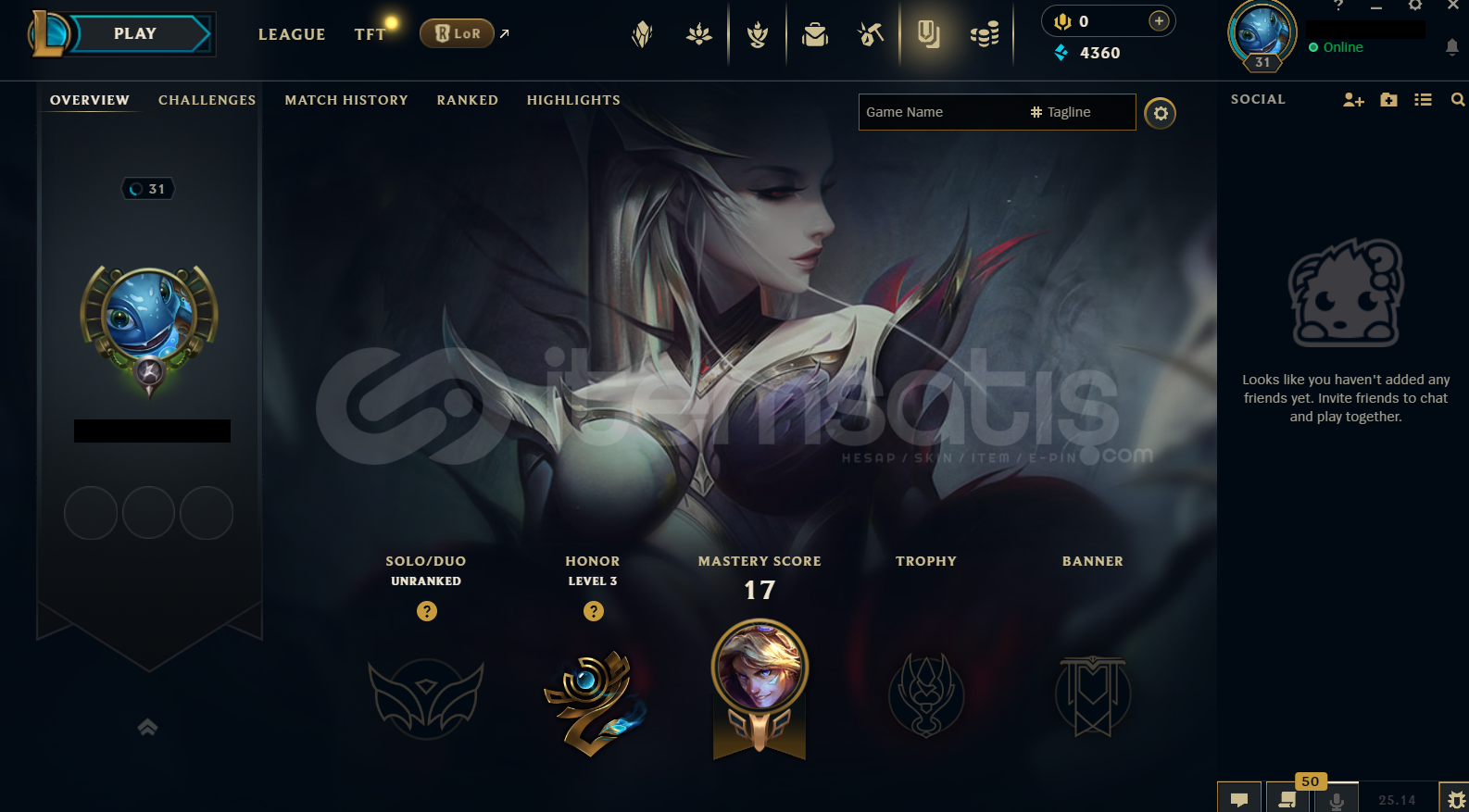 Hesap TR Unranked LoL Hesabıdır.