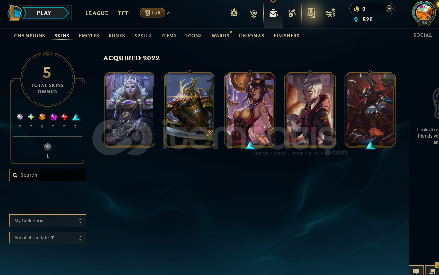 TR Unranked | 5 Kostüm - 42 Hero | LoL Hesap