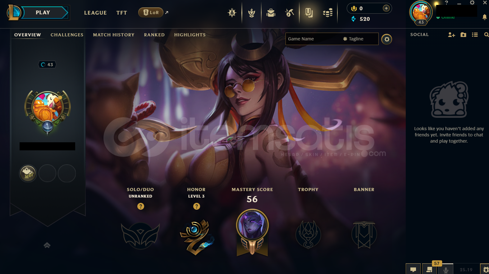 HESAP DETAYLARI:Hesap hiç ban yememiştir ve takdir seviyesi 3 dür.Hesap TR Unranked LoL Hesabıdır.İçerisinde 5 Kostüm 42 Hero ve 3 Adet İade Hakkı Mevcuttur.HESAP HAKKINDA:Kendi mail adresinize kayıt edebilir, etkinleştirmeyi kaldırabilir ve şifresini değiştirebilirsiniz.Hesaplarımızda hiç bir sıkıntı çıkmamaktadır.Herhangi bir sıkıntıda en iyi deste...