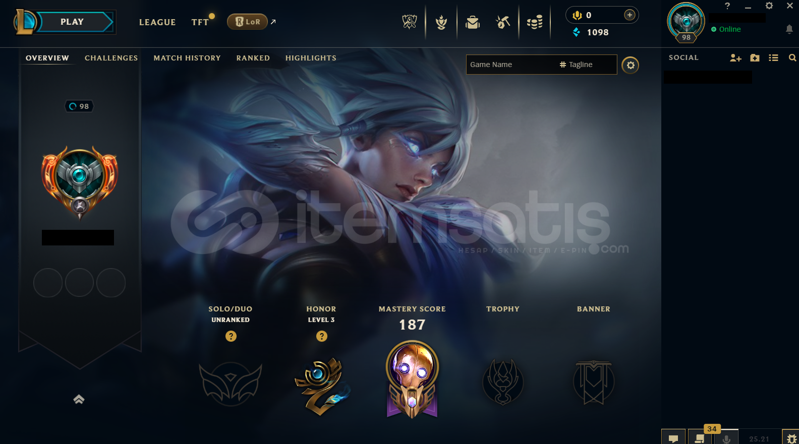 HESAP DETAYLARI:Hesap hiç ban yememiştir ve takdir seviyesi 4 dür.Hesap TR Unranked LoL Hesabıdır.İçerisinde 7 Kostüm 44 Hero ve 3 Adet İade Hakkı Mevcuttur.HESAP HAKKINDA:Kendi mail adresinize kayıt edebilir, etkinleştirmeyi kaldırabilir ve şifresini değiştirebilirsiniz.Hesaplarımızda hiç bir sıkıntı çıkmamaktadır.Herhangi bir sıkıntıda en iyi deste...