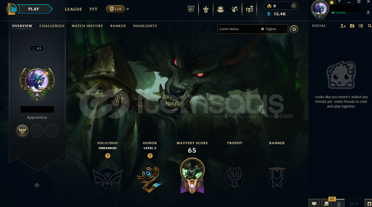 HESAP DETAYLARI:Hesap hiç ban yememiştir ve takdir seviyesi 3 dür.Hesap TR Unranked LoL Hesabıdır.İçerisinde 15470 Mavi Öz 9 Hero ve 3 Adet İade Hakkı Mevcuttur.HESAP HAKKINDA:Kendi mail adresinize kayıt edebilir, etkinleştirmeyi kaldırabilir ve şifresini değiştirebilirsiniz.Hesaplarımızda hiç bir sıkıntı çıkmamaktadır.Herhangi bir sıkıntıda en iyi d...