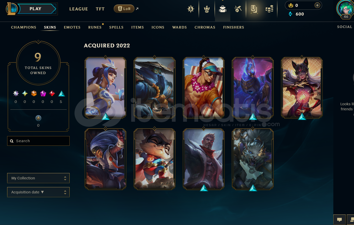 TR Unranked | 9 Kostüm - 36 Hero | LoL Hesap