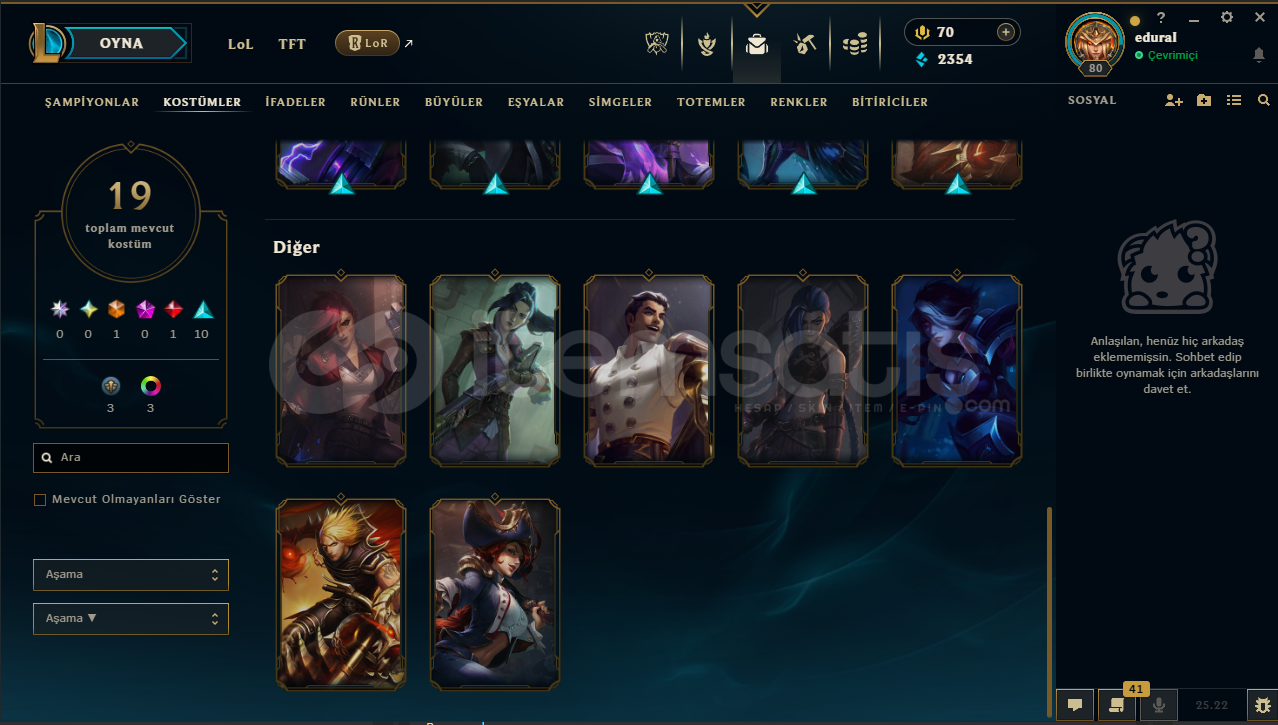 Hesabın E-Posta'sı ve Tüm bilgileri değiştirilebilir.Teslimatlar Otomatik Yapılmaktadır, 7/24 satın alır almaz tüm hesap bilgilerine ulaşabilirsiniz...Dereceli Direkt Girilebilir.-TALON MAIN ISEN BU HESABI KAÇIRMA-2354 Mavi Öz & 1731 Turuncu Öz + 11 Anahtar Bulunmaktadır.Hesabınızı satın aldıktan sonra sizden başka kimsenin erişimi olmaz.80 Level - UNRANKED(TR) Hesapt...