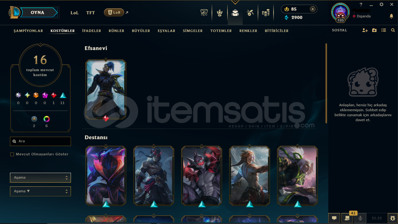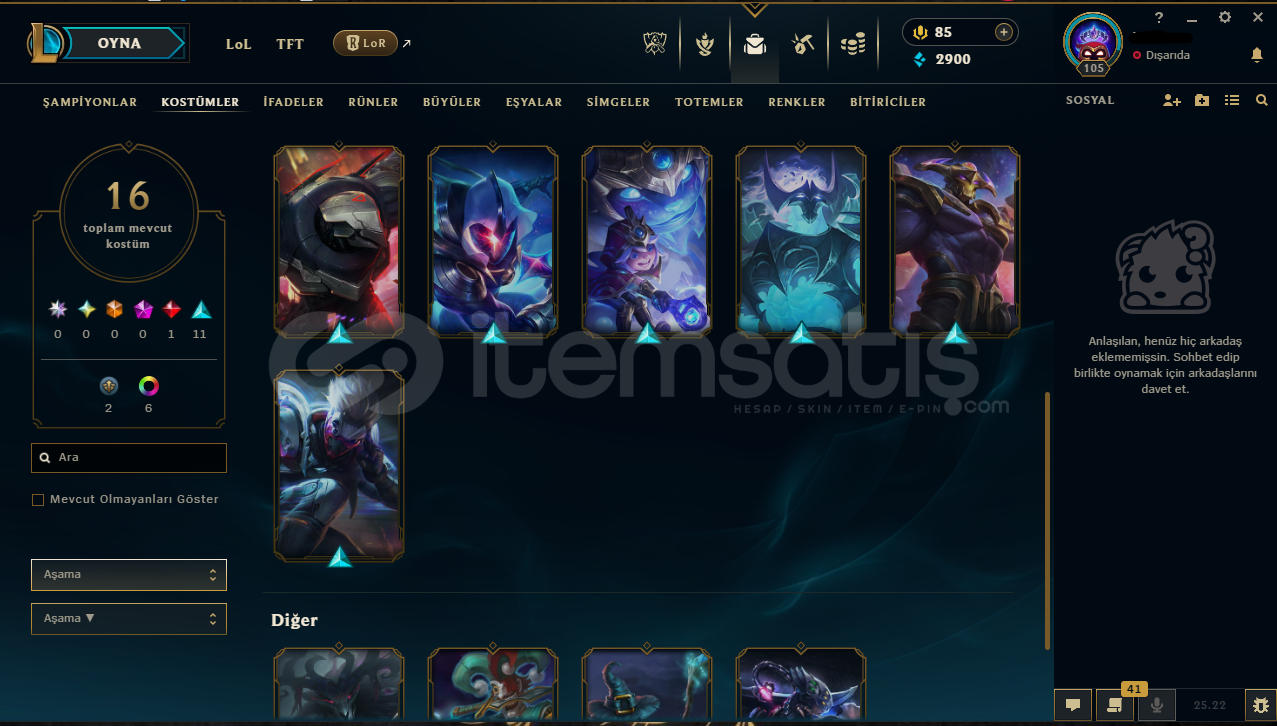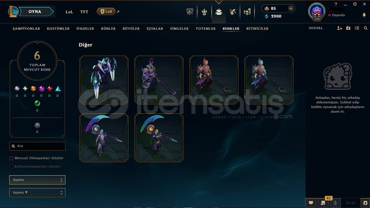 Hesabın E-Posta'sı ve Tüm bilgileri değiştirilebilir.Teslimatlar Otomatik Yapılmaktadır, 7/24 satın alır almaz tüm hesap bilgilerine ulaşabilirsiniz...Dereceli Direkt Girilebilir.-ZED-KAYN MAIN ISEN BU HESABI KAÇIRMA-EN HIZLI SATILAN HESAPLARDAN BIR TANESI-2900 Mavi Öz & 392 Turuncu Öz Bulunmaktadır.Hesabınızı satın aldıktan sonra sizden başka kimsenin erişimi olmaz.105 ...