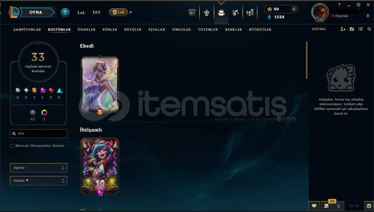 ⭐TR+YASUO MAIN+33SKIN+124 LVL+66CHAR+FIRSAT+⭐