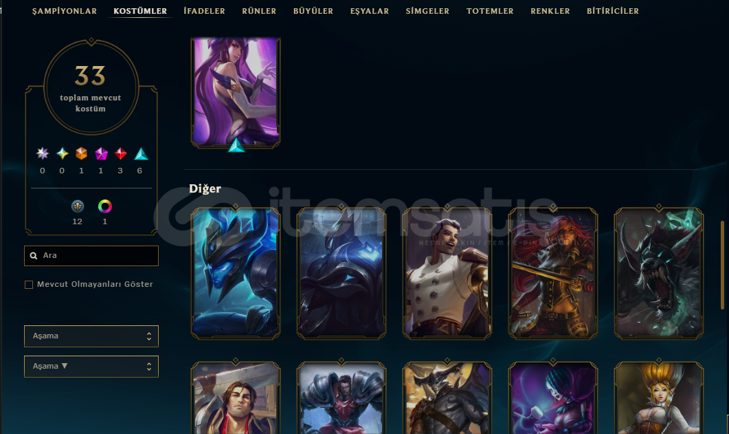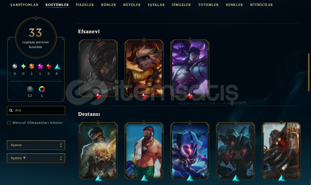 33 Kostüm + 66 Şampiyon bulunmaktadır.