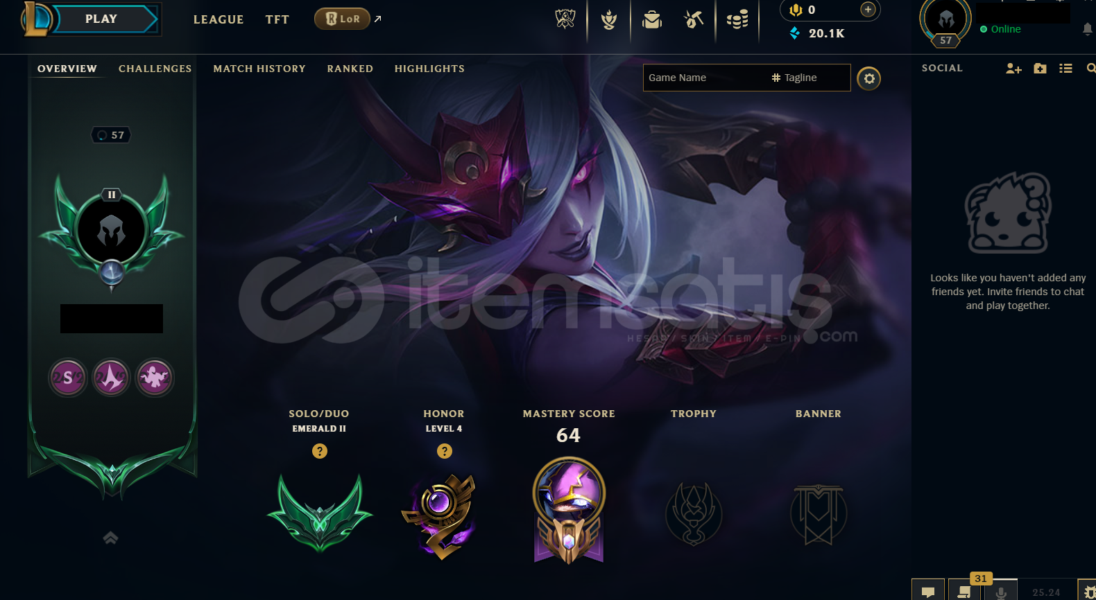 Hesap TR Tek/Çift Zümrüt 2 - 55 Lp TR LoL Hesabıdır.