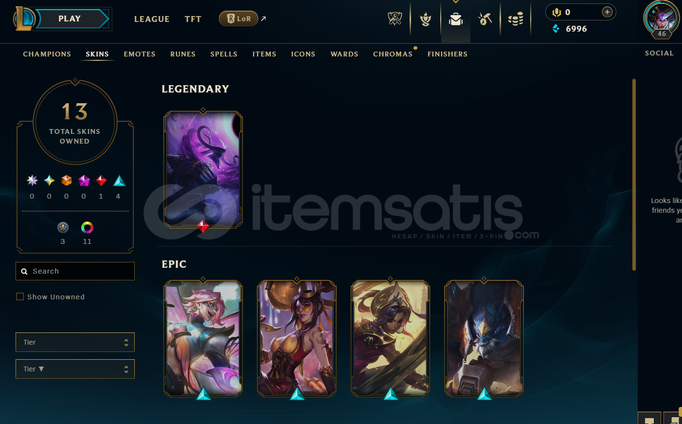 TR Zümrüt 4 | 13 Kostüm - 57 Hero | LoL Hesap