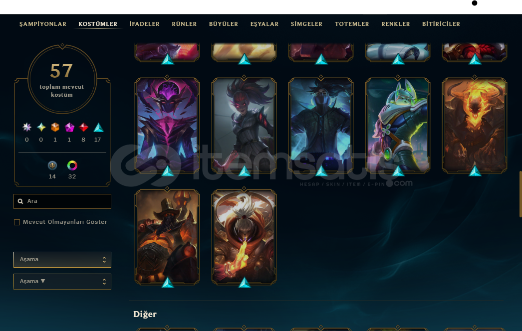 Hesabın E-Posta'sı ve Tüm bilgileri değiştirilebilir.Teslimatlar Otomatik Yapılmaktadır, 7/24 satın alır almaz tüm hesap bilgilerine ulaşabilirsiniz...Dereceli Direkt Girilebilir.1823 Mavi Öz & 2763 Turuncu Öz Bulunmaktadır.Hesabınızı satın aldıktan sonra sizden başka kimsenin erişimi olmaz.186 Level - Zümrüt 4(TR) Hesaptır.57 Kostüm + 32 Renk Paketi ve 101 ...