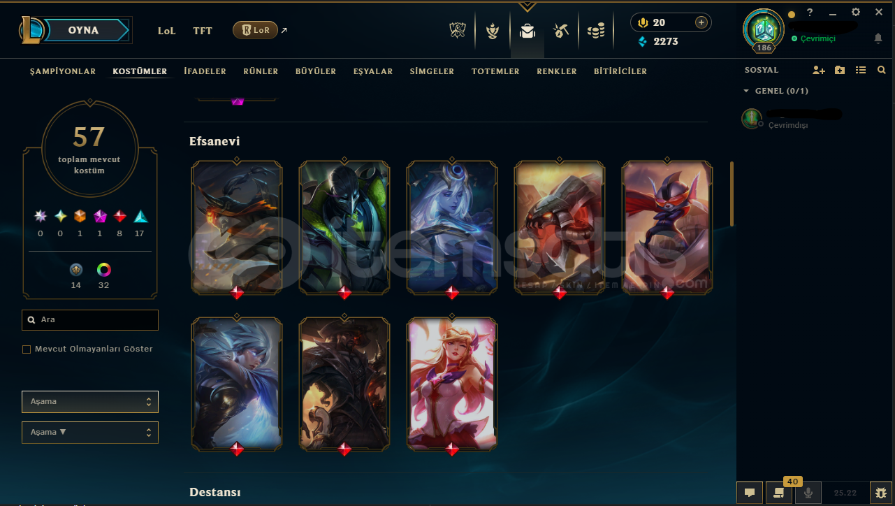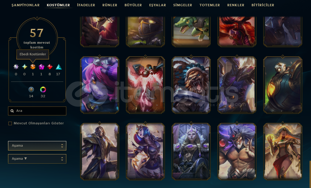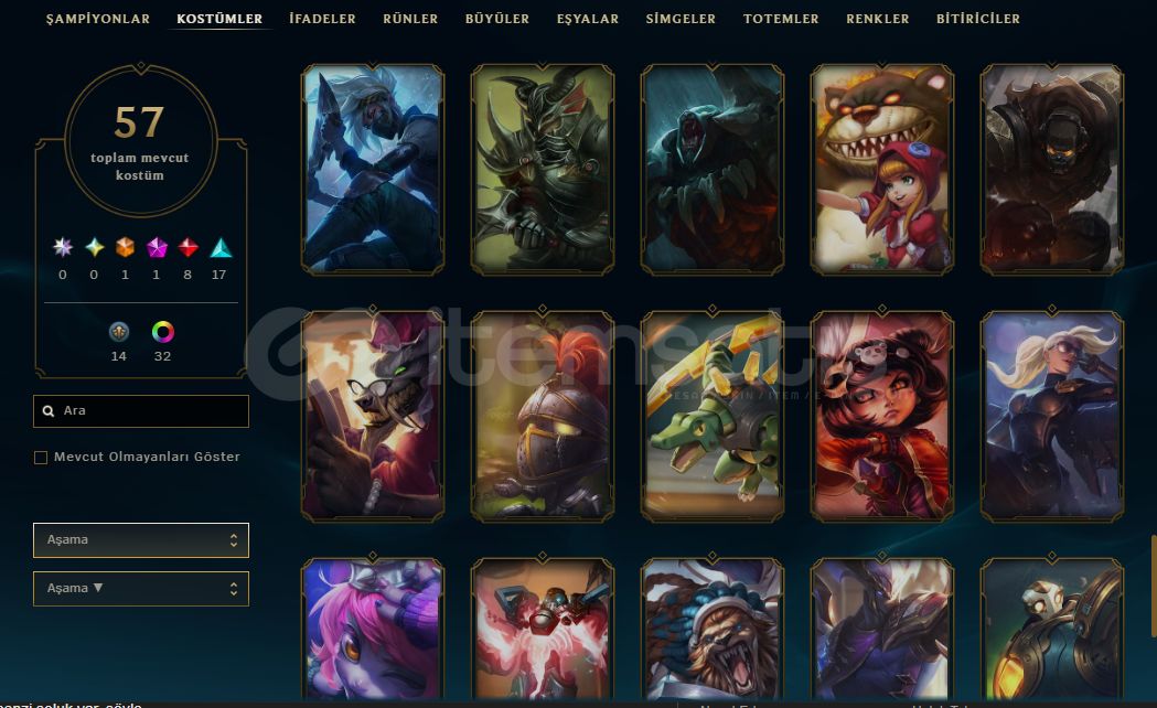 57 Kostüm + 32 Renk Paketi ve 101 Şampiyon bulunmaktadır.