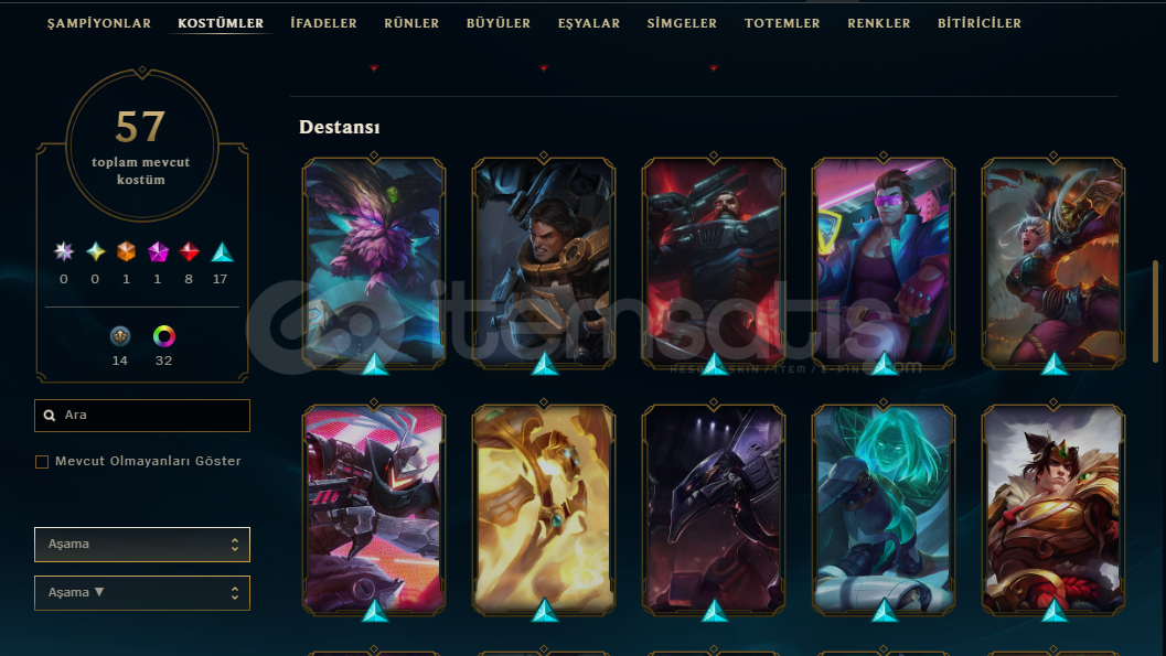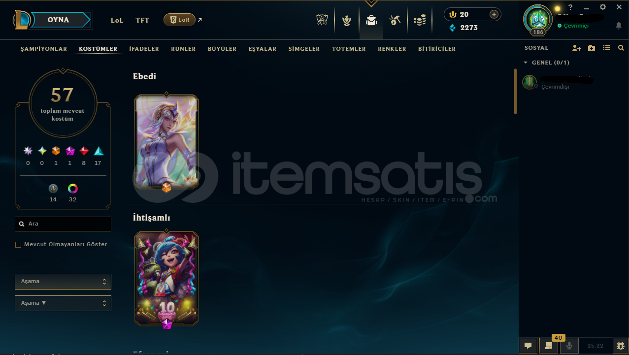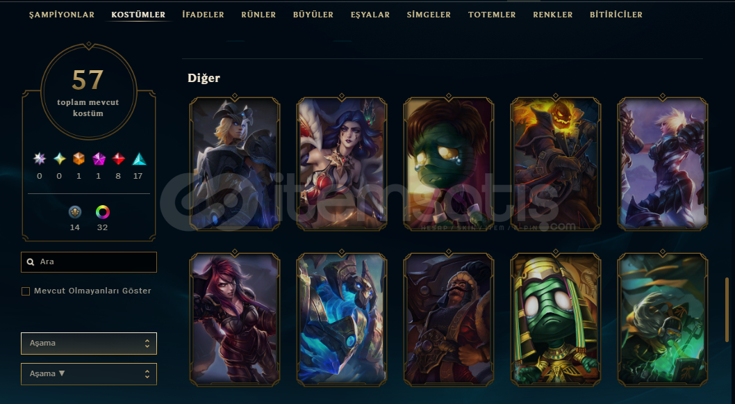 ⭐TR-Zümrüt4+186LVL+57Skin+101Char/Rengar Main/⭐