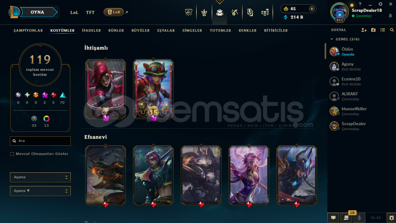 TÜM KARAKTERLERİ AÇIK 119 KOSTÜMLÜ