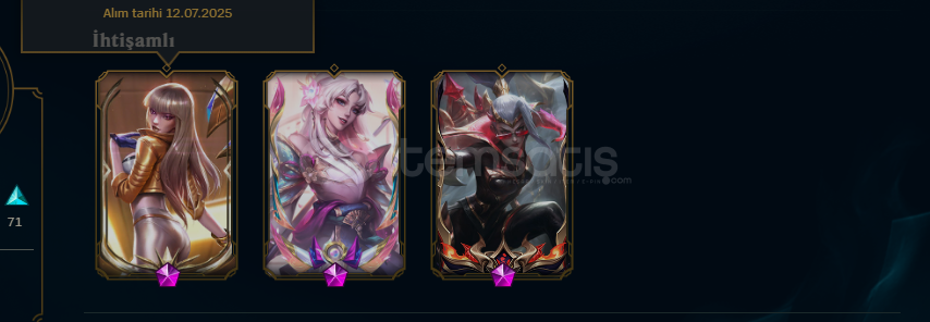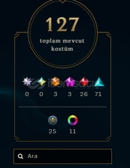 BOL SKİNLİ HESAP PAZARLIK OLUR NEREDEYSE HER BULUNAN ŞAMPİYONDA KOSTÜM VARDIR