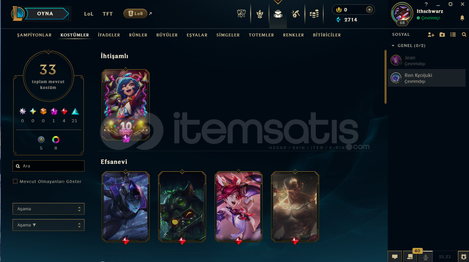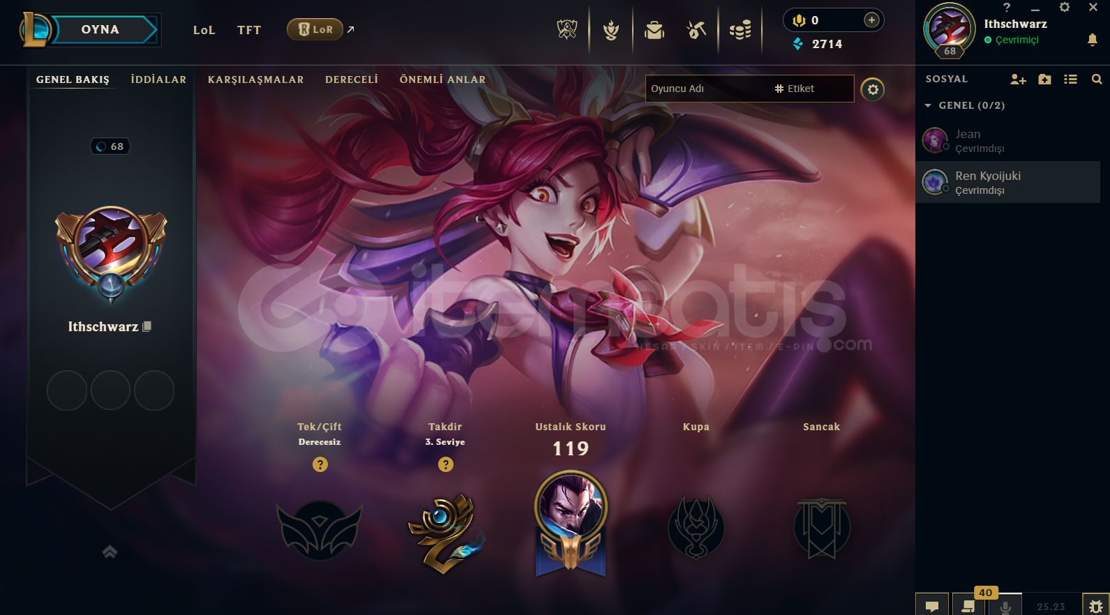 UNRANKED 68 LVL+ 33 SKIN + 7.5K TURUNCU OZ