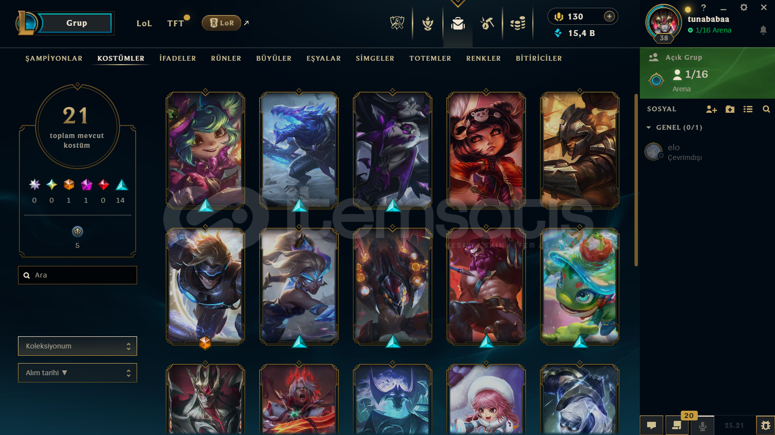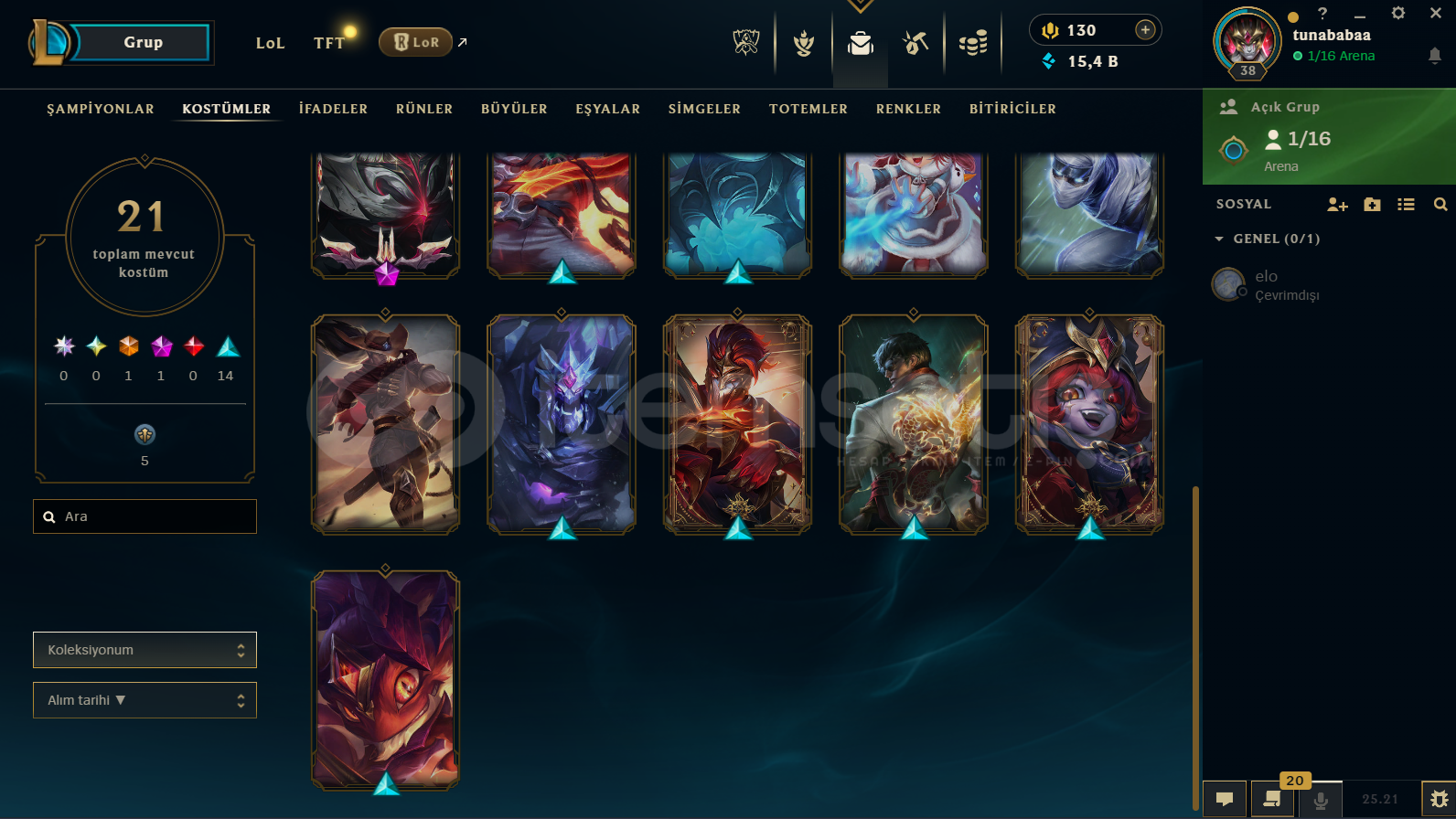 HESAP UNRANKED BOL KOSTÜMLÜ 38 LVLHESABA YAKLAŞIK OLARAK 1800 TL FELAN YATIRILDI21 TANE SKIN VAR HEPSİ DEĞERLİ SKINLERPULSEFIRE EZREAL VARKOSTÜMLERİN ÇOĞU DEĞERLİ82 MÜCEVHER VARUNRANKED TRDETAYLI BİLGİ İÇİN YAZABİLİRSİNİZBAN VS. YOKTUR DAHA ÖNCE HİÇ YEMEMİŞTİR.
