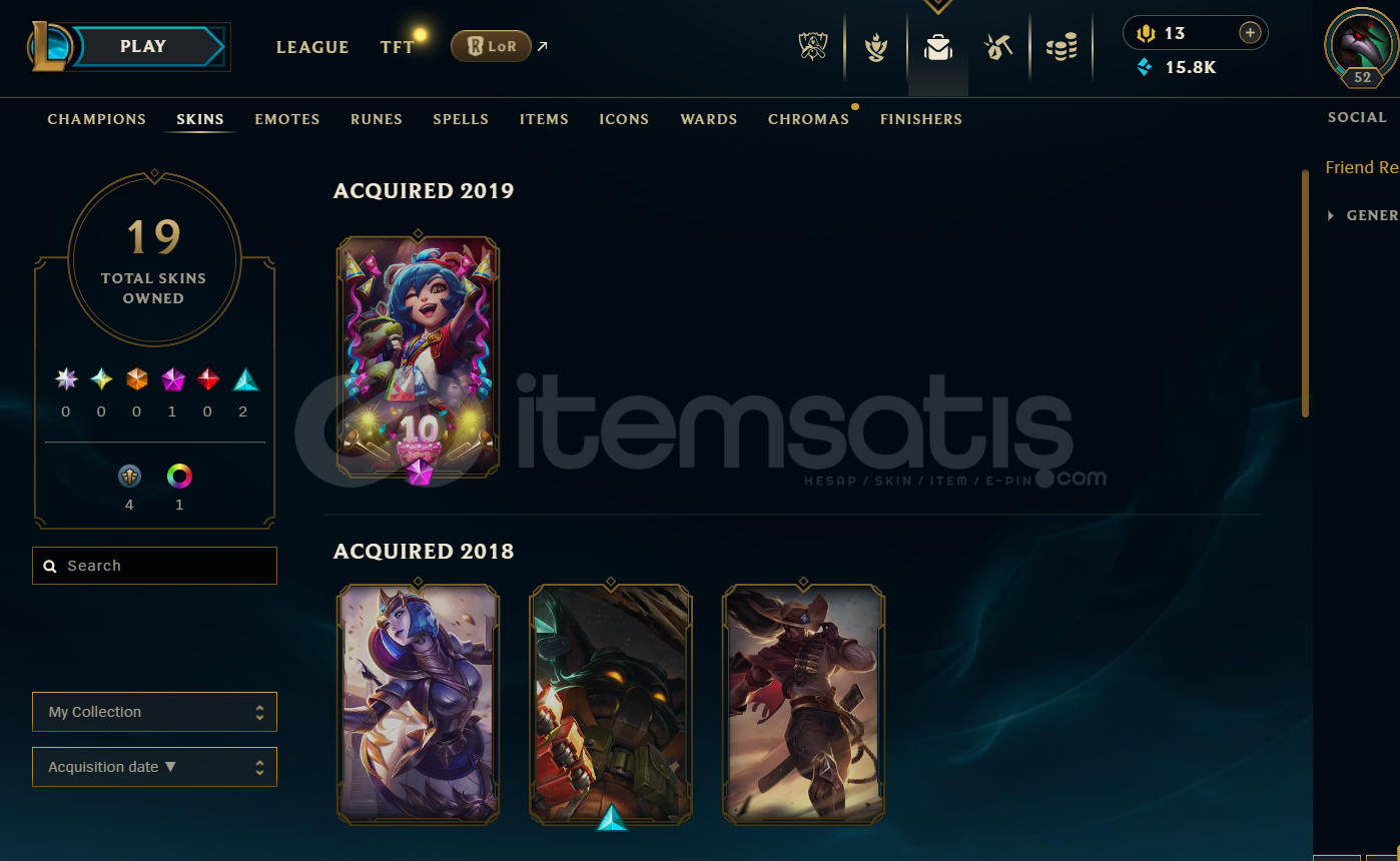 Uygun Fiyatlı ✭ 19 Skins ✨52 lvl | 15K Mavi Öz