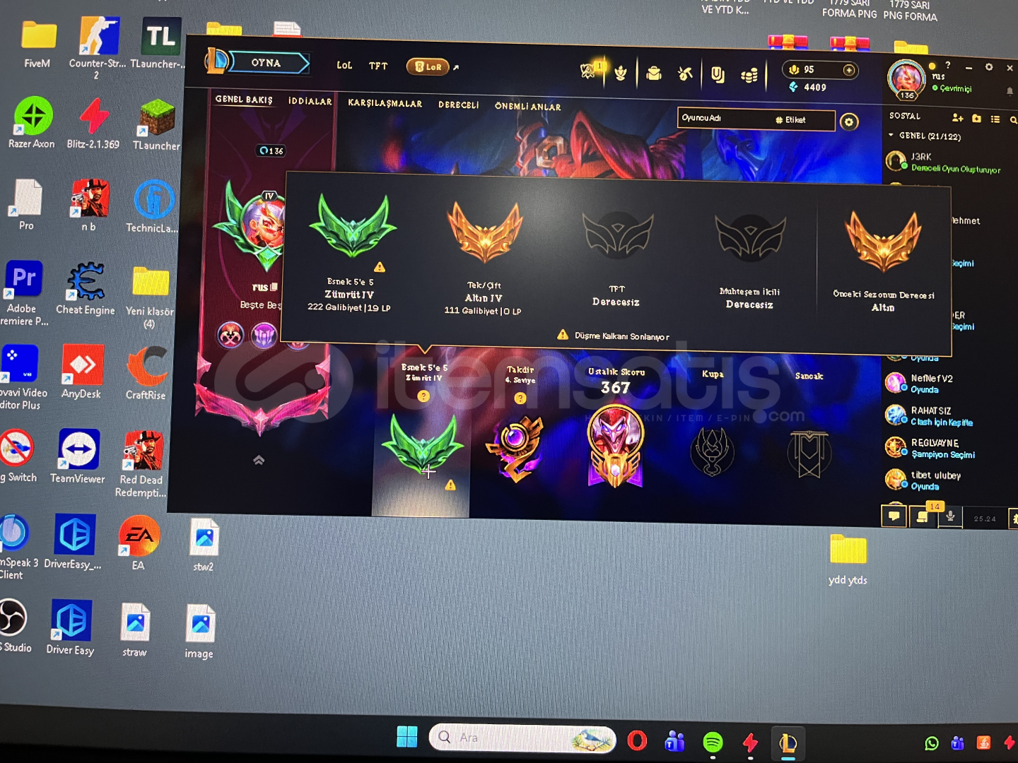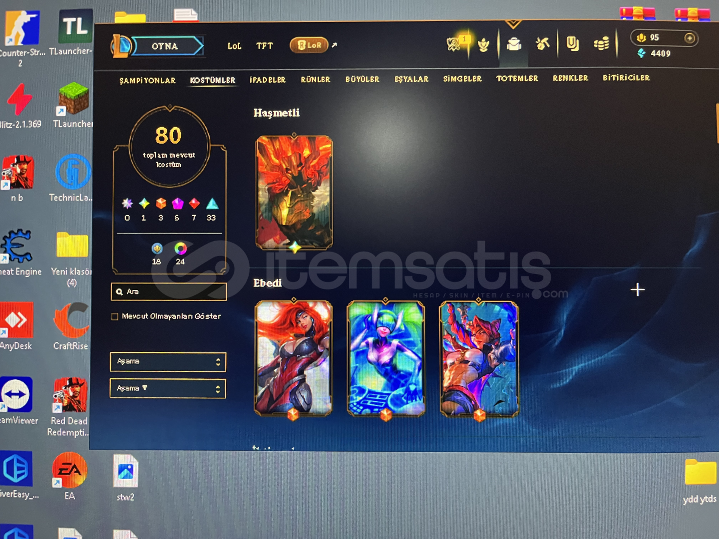 Hesap 80 kostumlu olup zumrut 4 dur 190k shaco var Fiyatta pazarlik payi vardir