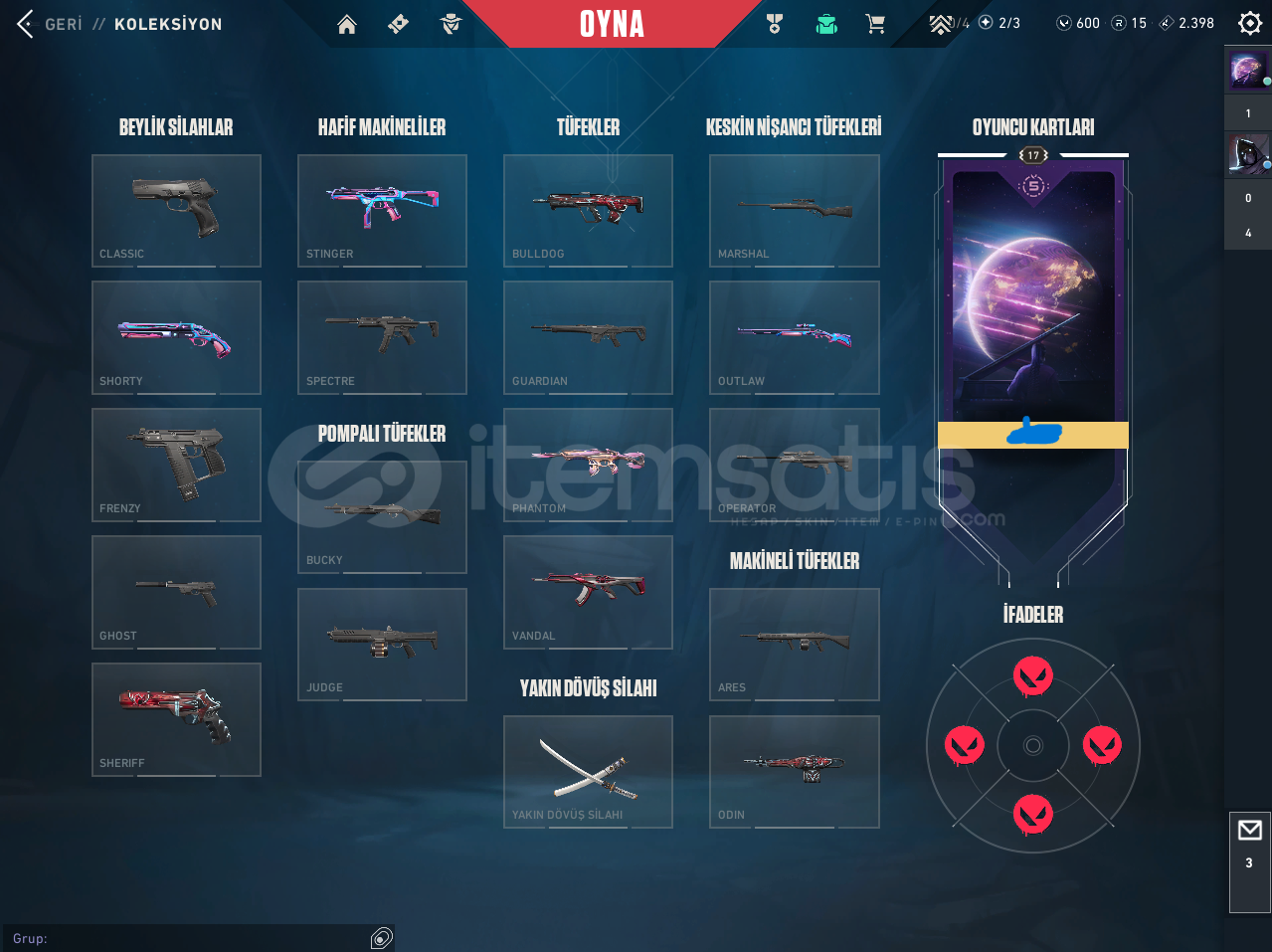 valorant hesabına gelicek olursak oni katana,sırçiçeği phantom ve zaman ötesi vandal vardır bu battlepass alınmıştır 30 levellerdeydi valorant hesabı da 17 level falan olması lazım valoranta totalde 2800--2900 yatırılmıştır
