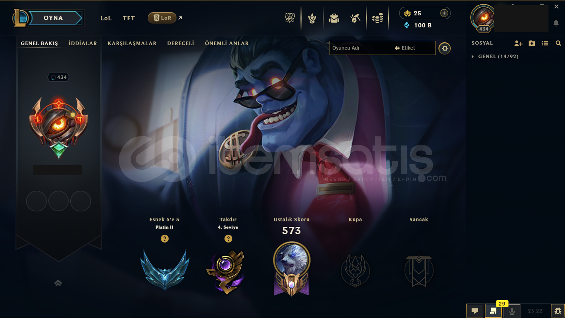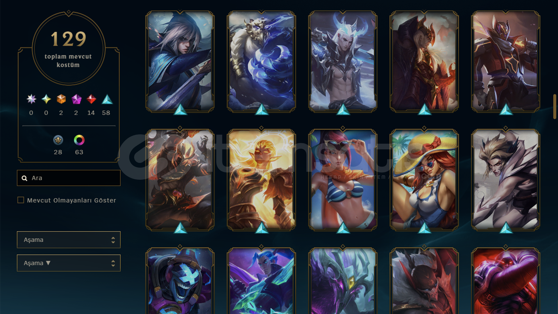 Mavi Öz:100kRenk Paketi:63Kostüm Sayısı:129+10(açılmamış)Şampiyon Sayısı:Tüm Şampiyonlar açıkHesabın ilk sahibi benim oyundan sıkıldığım için satıyorum hesabı her şeyiyle devredeceğim valorant hesabı var ama boş sadece karakterler açık biraz o kadar✅ Hesabın güvenliği için bilgi değiştirme işl...