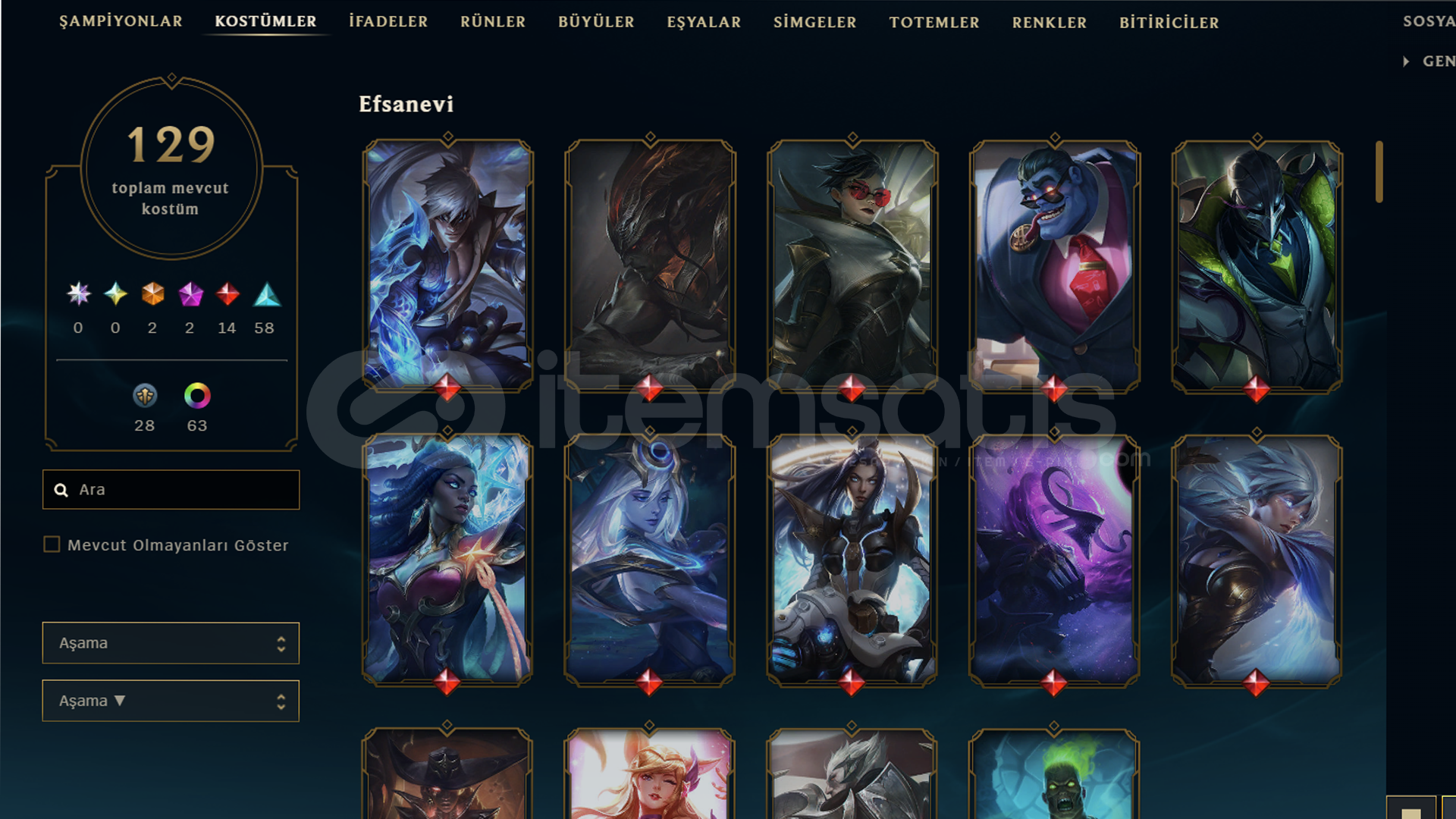 Yüksek MMR'lı Bol Kostümlü Hesap