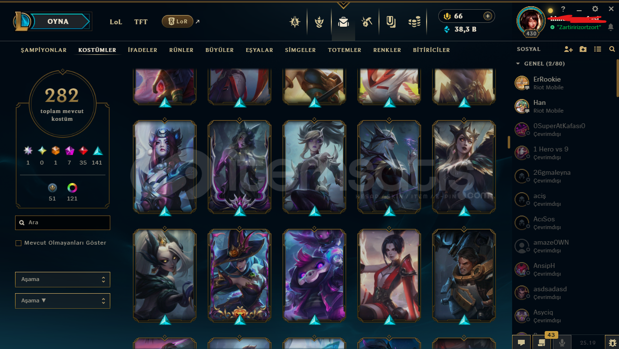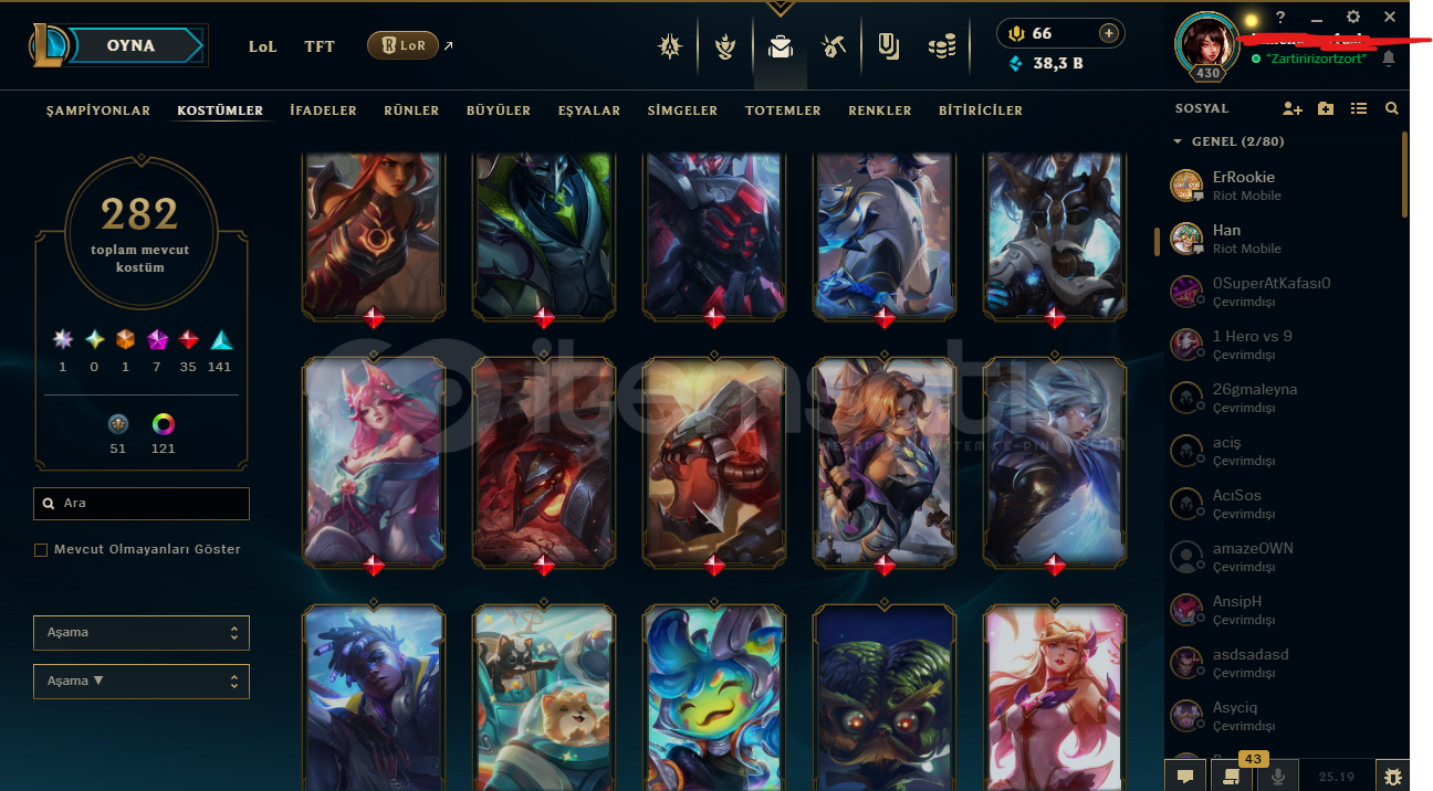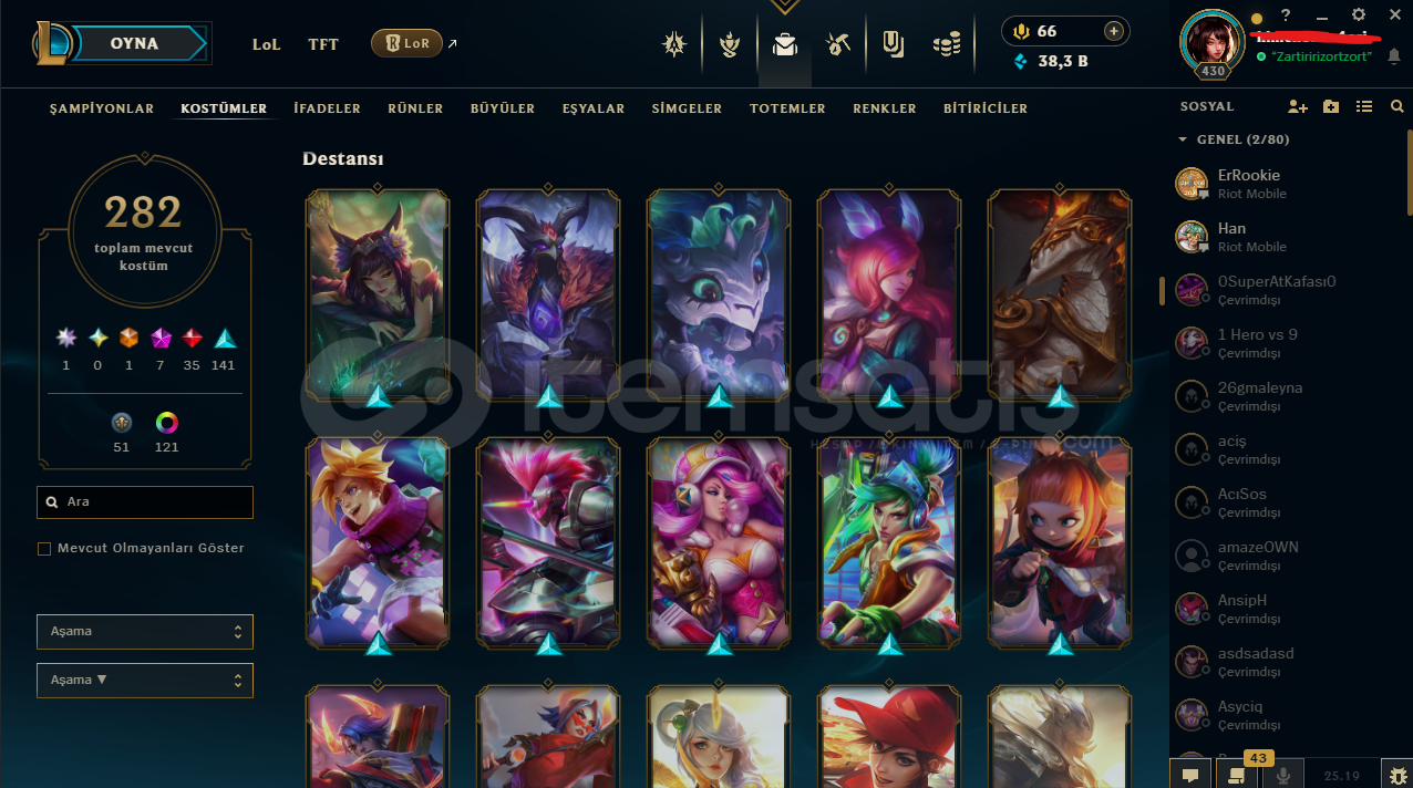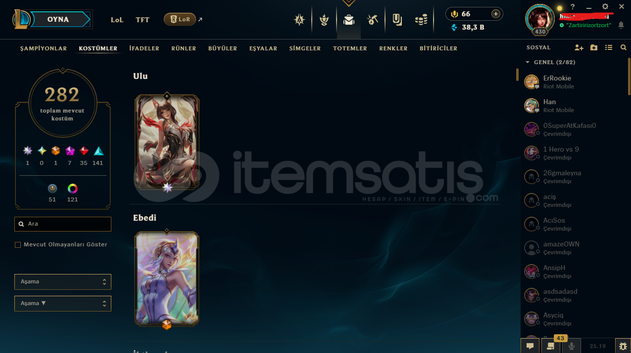 ⭐️ Yükselen Efsane Ahri | 282 Skin EFSANE HESAPHesapta isim değiştirme hakkı vardırbütün bilgiler değişir e posta şifremail ile verilecektirtelefon doğrulanmadıtr sunucuHesap nicki değişir