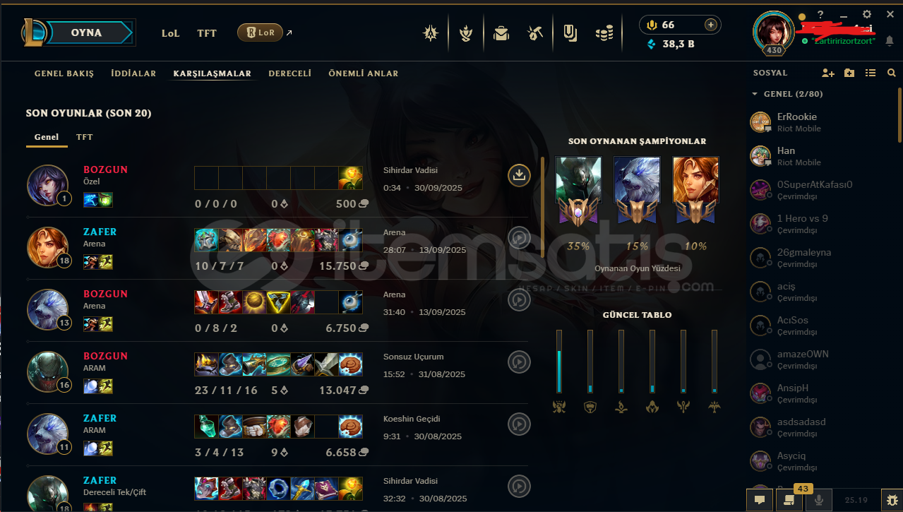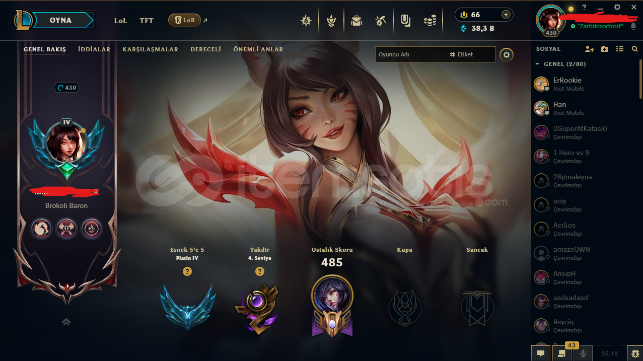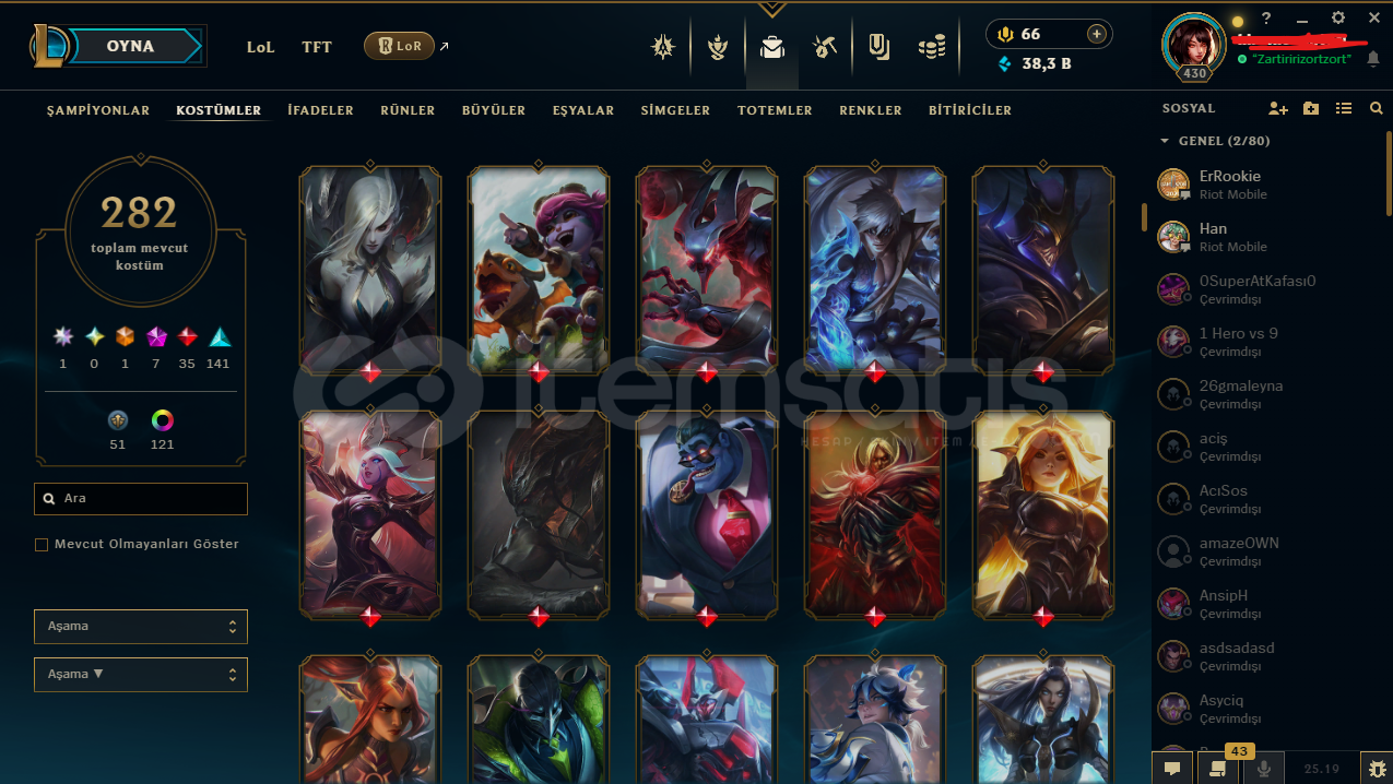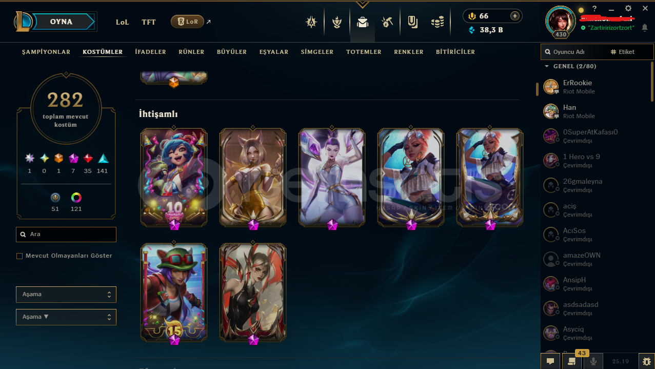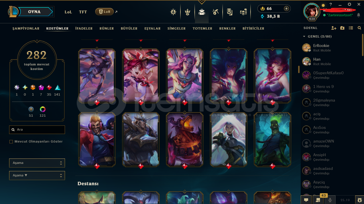 ⭐️ Yükselen Efsane Ahri | 282 Skin EFSANE HESAPHesapta isim değiştirme hakkı vardırbütün bilgiler değişir e posta şifremail ile verilecektirtelefon doğrulanmadıtr sunucuHesap nicki değişir