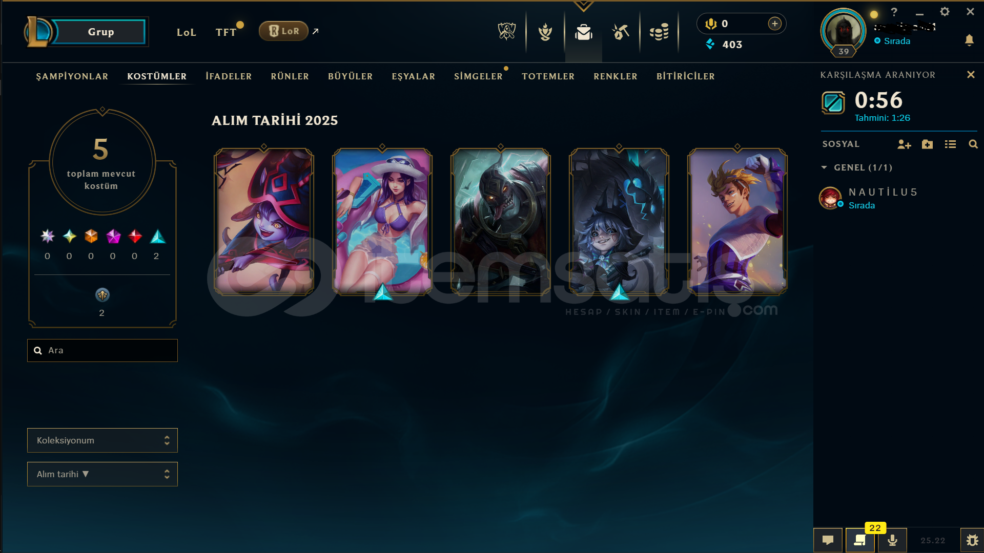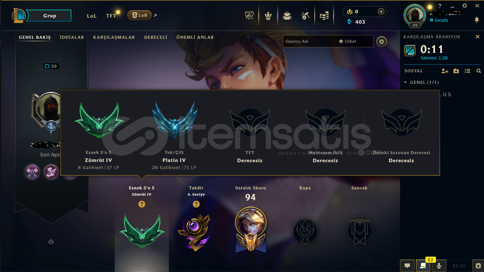 39 Lvl 70 Şampiyon açık5 Kostüm Bulunur+36 Lp -14 LpMmr Yüksek Mail Değişir Tel No Kayıtlı Değil Tüm bilgiler değişmektedir