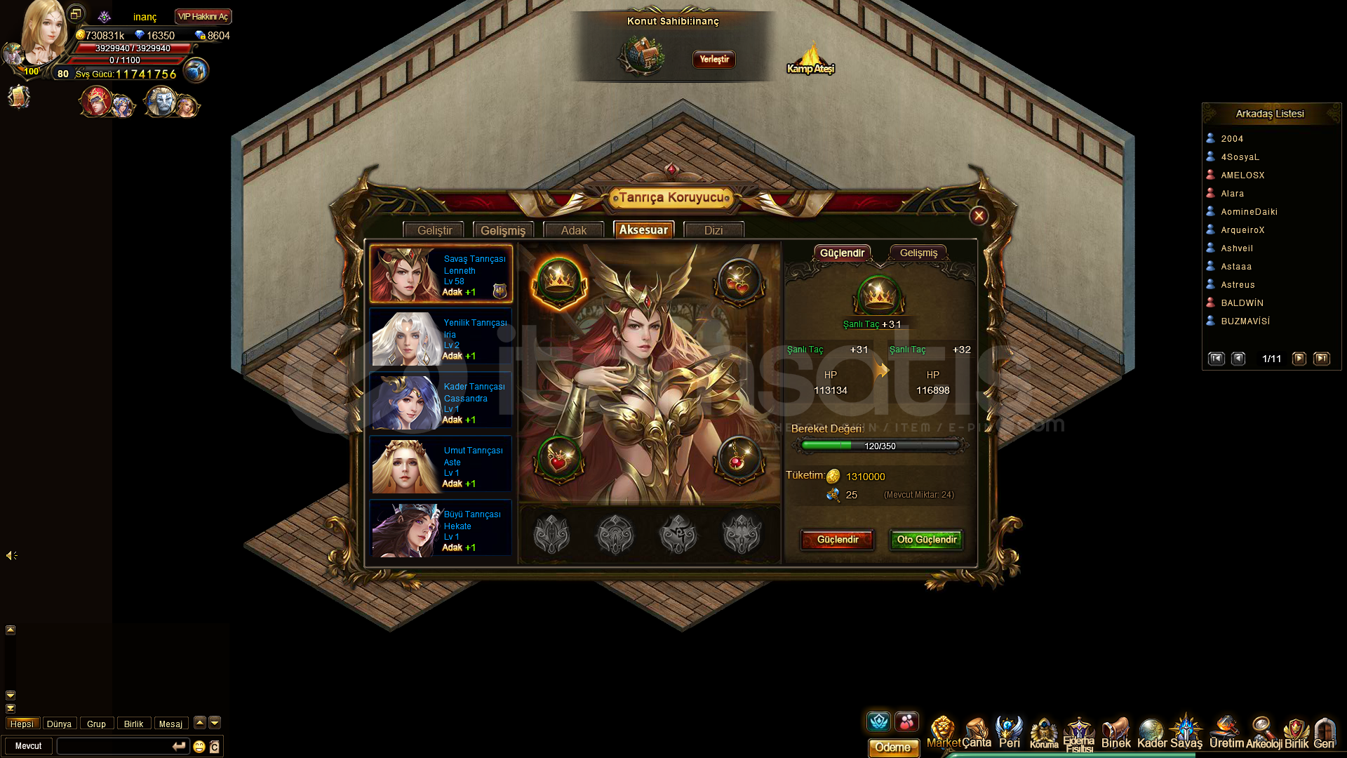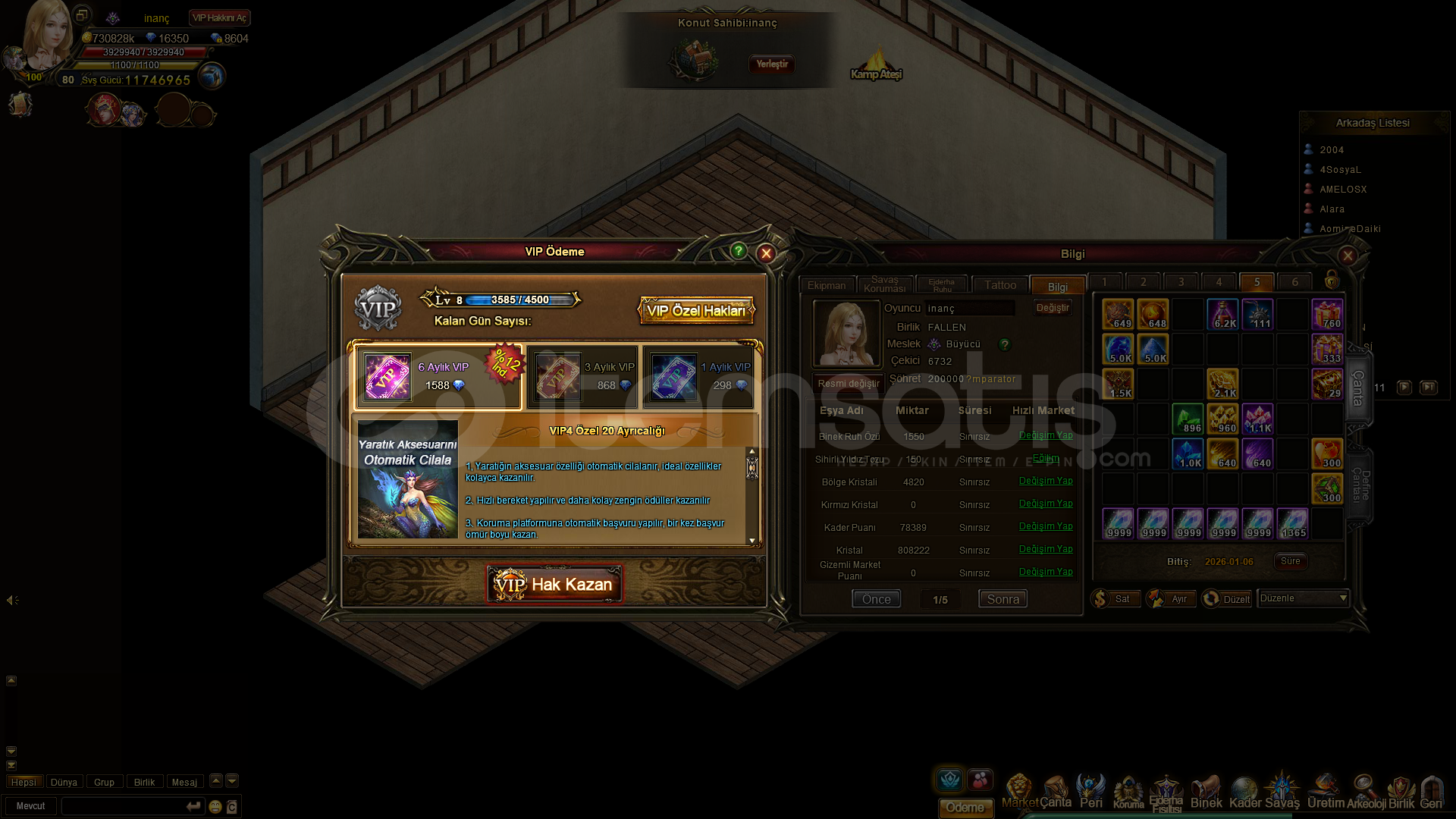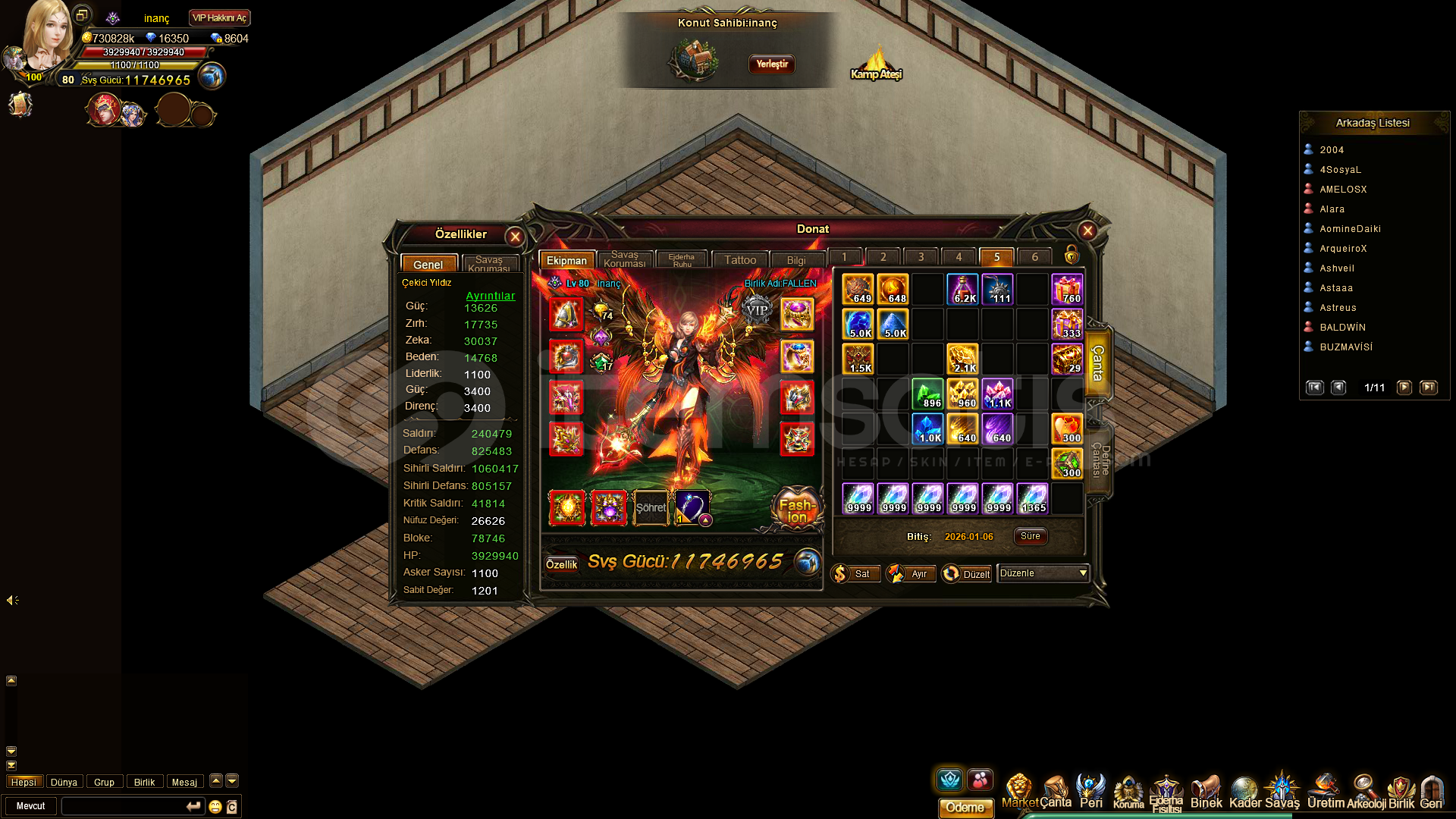Hesapda 16k elmas var Acemi madeni duruyorFüzyon çekip Odin yapacak malzemesi var4 tane korumanın ekipmanını turunculayacak kadar malzeme varÇiftlik 58 lvlAstroloji AçıkVİp9 olmak üzereÇekici Yıldız ve Şöhret Tanrısı hesap bu hafta eski sv etkinliklerine dönüyorFiyat ve hesap detayları için pm gelin mail, tel, face herhangi bir bağı yok