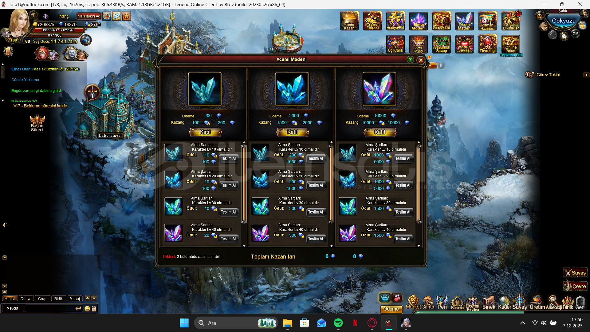 Hesapda 16k elmas var Acemi madeni duruyor
