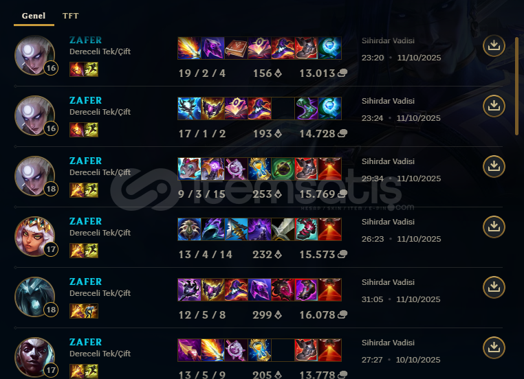 Diana, Kayn, Talon, Twisted Fate, Garen, Teemo ve Briarda Türkiye 1.liklerim oldu.