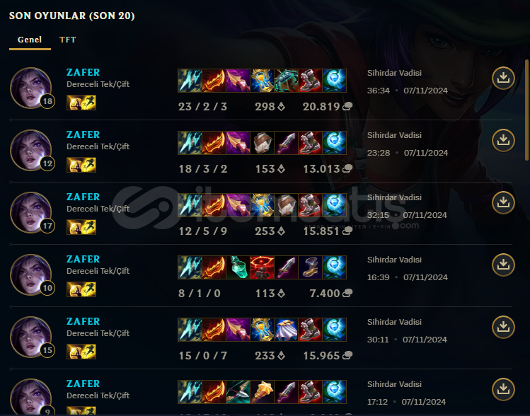 Merhaba arkadaşlar sezon 6dan beridir oynayan oyuncuyum. Grandmaster seviyesindeyim.Olabildiğince fiyatımı uygun tutarak eloboost hizmeti veriyorum iletişime geçebilirsiniz.Demir elo kademe başı 45tlBronz elo kademe başı 60tlGümüş elo kademe başı 70 tlaltın elo kademe başı 90 tlplat elo kademe başı 115 tlzümrüt elo kademe başı 135 tl..Koçluk hizmeti için bilgi a...