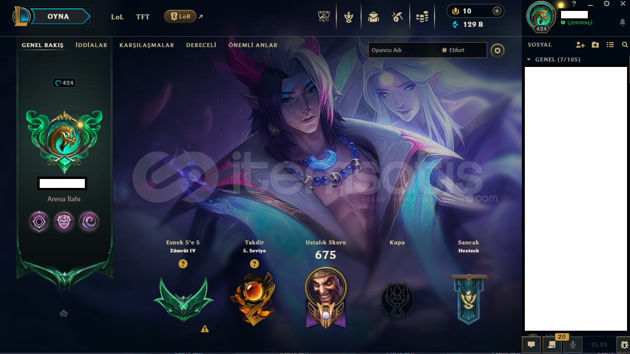 424 Level –135 Kostüm –129.000 Mavi Öz –Tüm Şampiyonlar Açık –Takdir Seviyesi 5 –Zümrüt LigiE-posta değişimi yapılabilir (güvenli devredilir)Hesapla ilgili sorularınız varsa yazabilirsiniz.Ciddi alıcılar için pazarlık payı vardır.