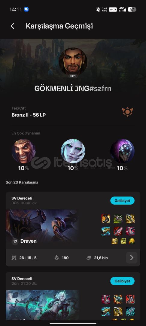 Tek sahibinden mailli yıllarımın hesabı bütün bilgiler mevcut adıma Full karaktere yakın acık 5-6 tane vardır acilmayan onlarida acacak mavi öz bulunuyor 60-70 tane kostüm ligler sıfırlanacak önceki sezonları altın bitirmiş bi hesap sayamadığım birçok şey mevcut bilgi icin yazabilirsiniz. Şuan hesap bronz 2 de bir haftaya altın yolunda olur çok oynayamıyorum keyif icin oynadigimdan ligi düştü plata jadar yolu var yeni sezonda 8 yıldır kasılmış bi çar.