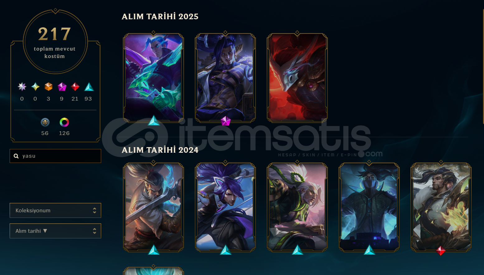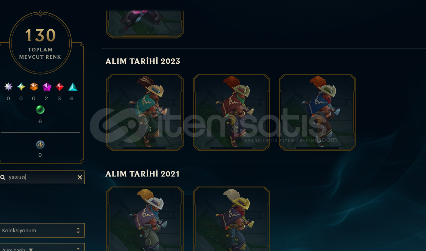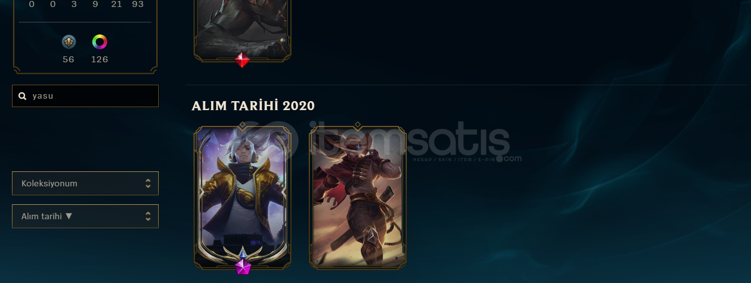 Keleksiyonluk yasuo hesabı fiyat tek rpler tavan
