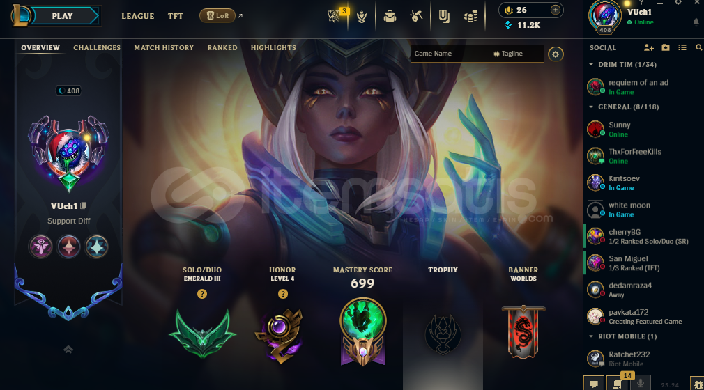 Hesabın Solo/duo rankı Zümrüt 3türFlex Rankı UnrankedToplam skin miktarı 161Sunucusu AvrupaBaşka merak ettiğiniz şeyler için iletişime geçebilirsiniz