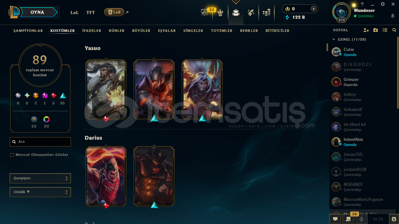 Fotoğraf eskidir.Hesap PLAT 3 8 LP'dir.86 Skin bulunmaktadır.Herhangi bir ban veya ceza bulunmamaktadır.Şifre ve mail bilgileri değişmektedir.