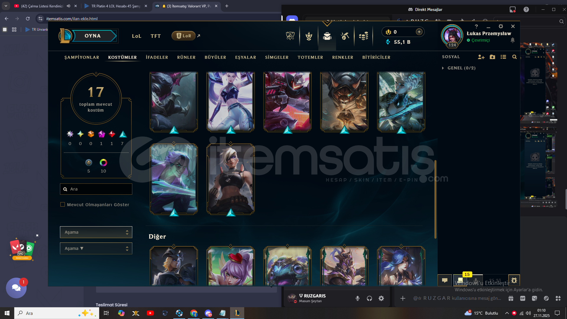 içinde 17 kostum 55k mavi öze 17 kostum efsane hesap kaçırma