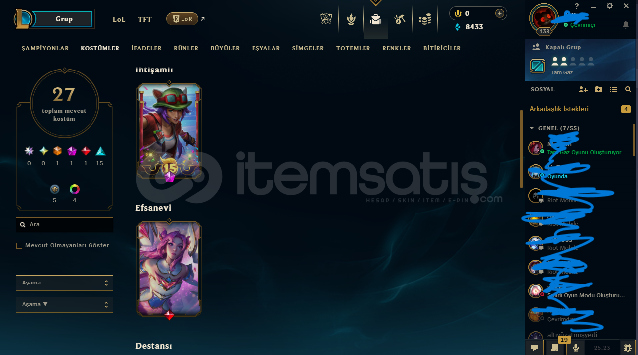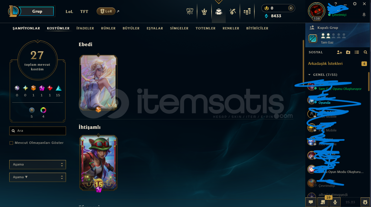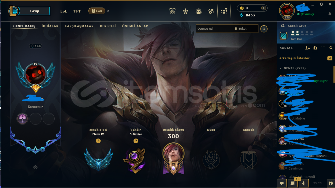 Sorunsuz lol hesabı mainlemelik elementalist lux skini satın aldımmail tamamen değişir bot lane çarlarının skini var çoğunluklahesap tamamen üstünüze verilecektir mail değişimi herşeykendi hesabım olduğu için geri çekme olmaz imkansızdır