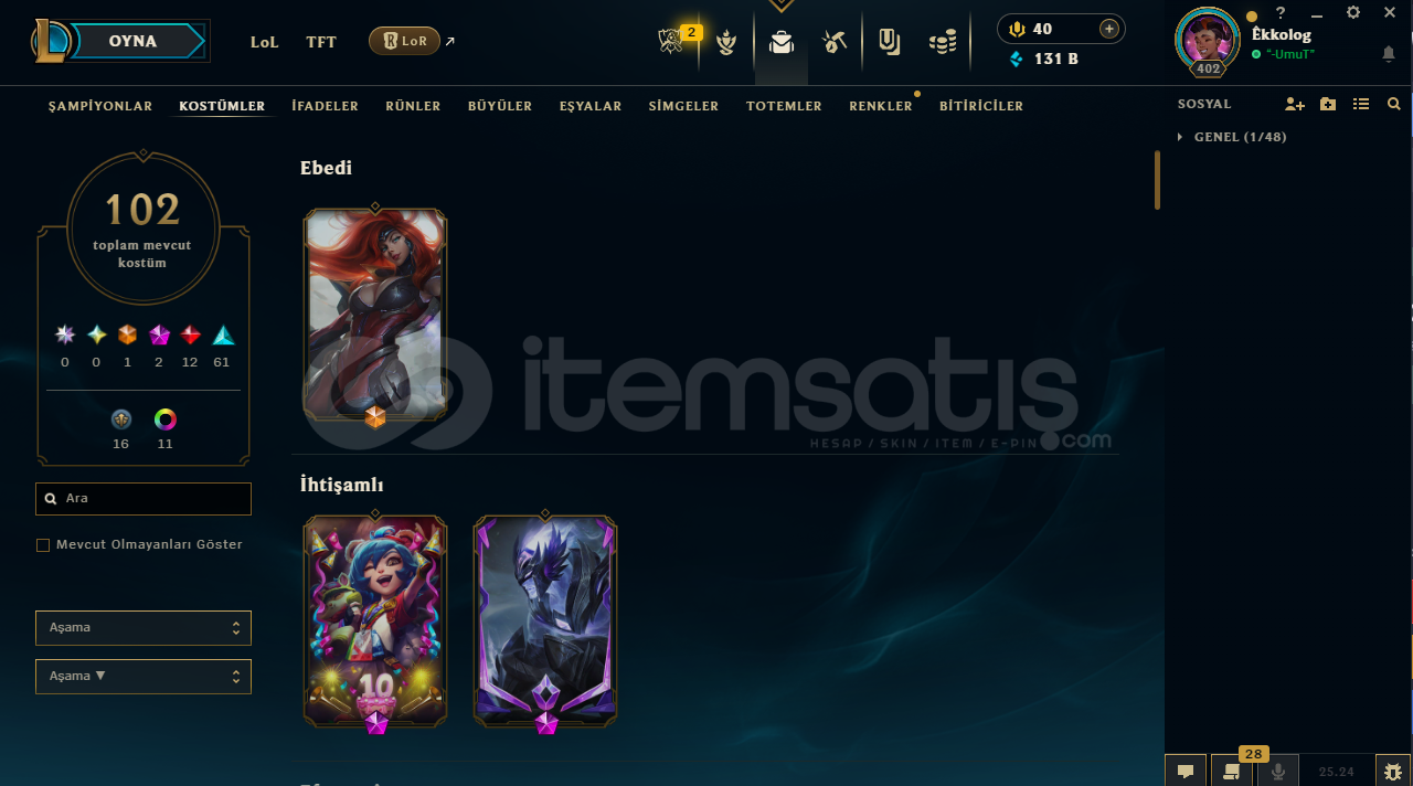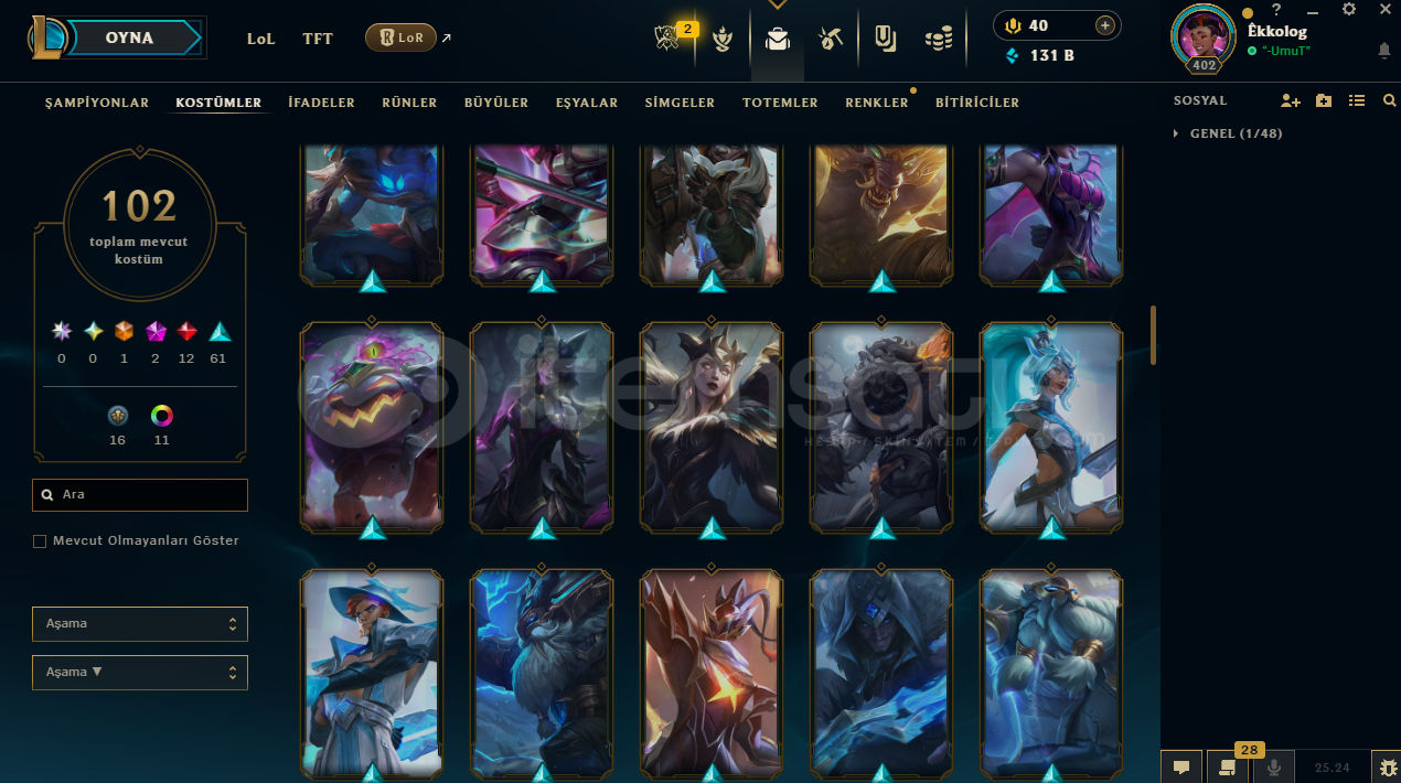 Hesapta Minimum Kaç Skin (Kostüm) Mevcut?
