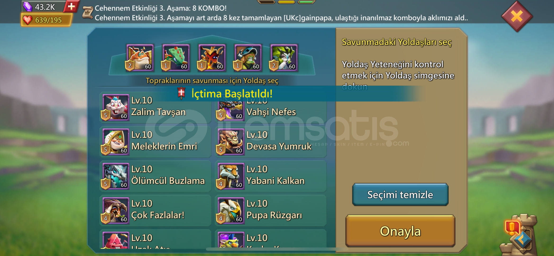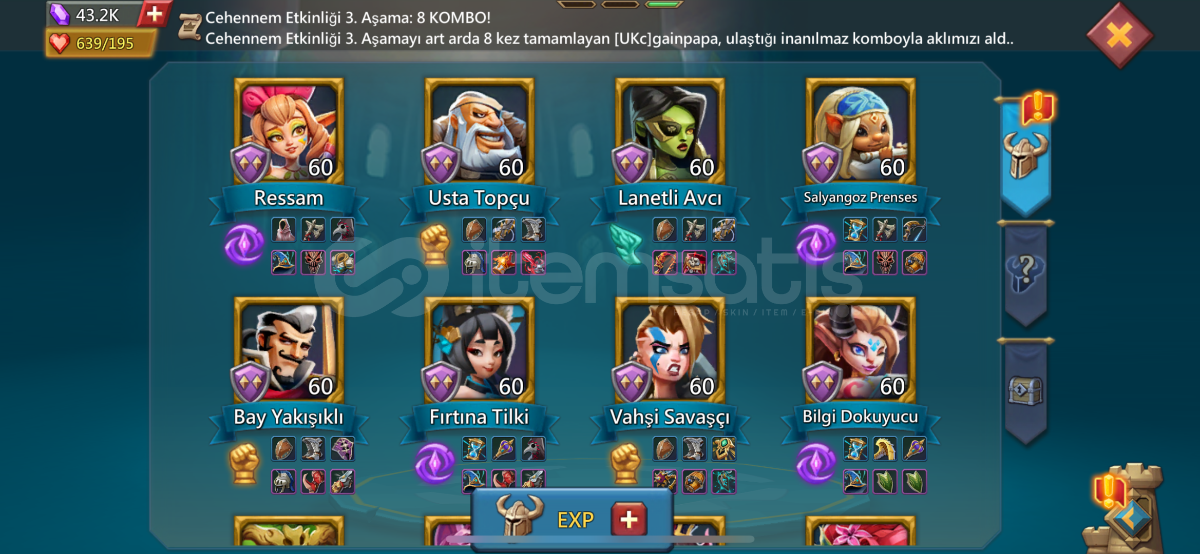 Hızlı Olan kapsın diyelim 1 fırsat daha salalım✨3 Mitik Şamp✨9 Gold Hero✨1120-980-1050 Max sld(Taş degişimi yok kupalarda piyade takılı)✨5 Max yolda 1-8 1-4 Seviye✨3 Mitik 1 sarı kupa✨15B kaynak✨Premium Avatar