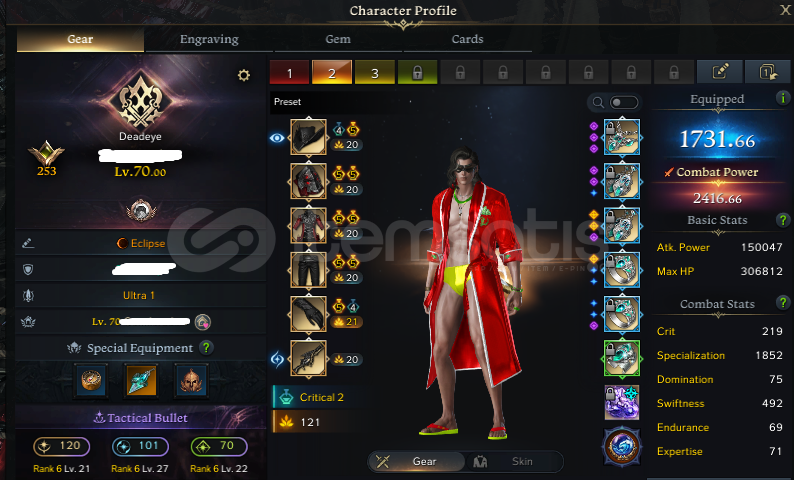 Gianah Server Main 1730+ Deadeye Hesap