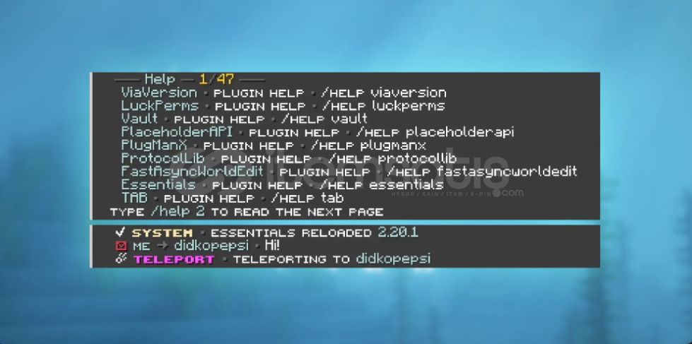 Ürün, EssentialsX eklentisinin daha donanımlı, modern ve güncel konfigürasyon