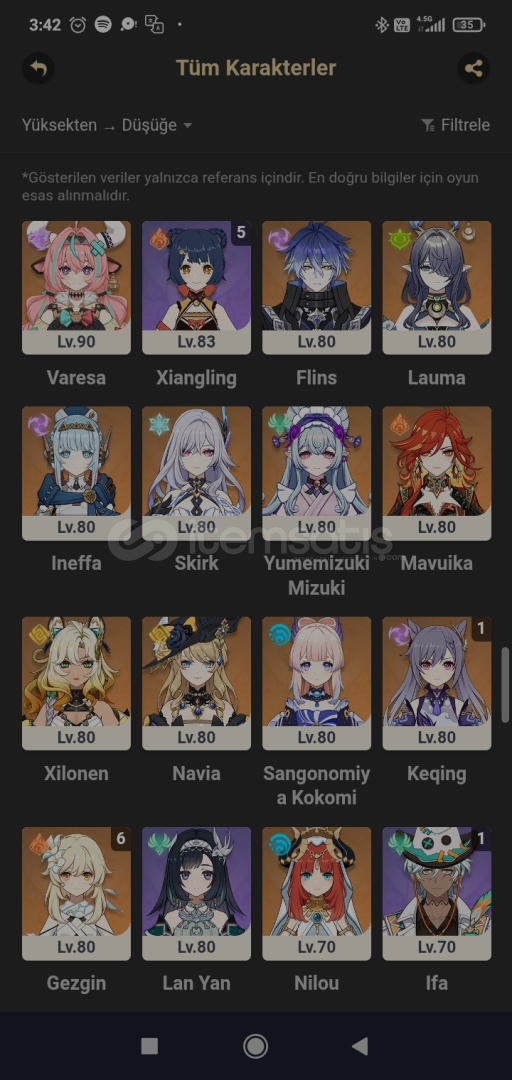 GENSHİN AR57, 120 GÜN WELKİN, 15 TANE 5*