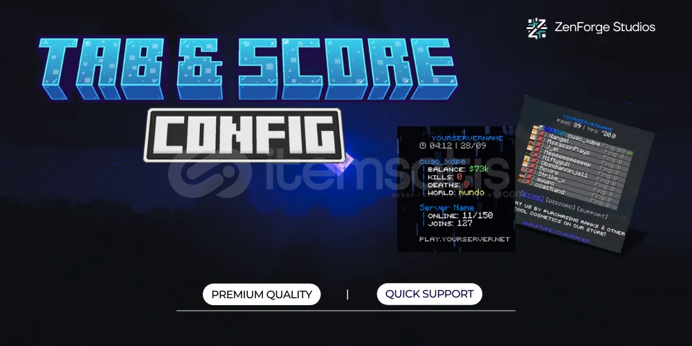 Bu config TAB Plugini içindir (bedava)PlaceholderAPI ve TAB Plugini olmaz ise çalışmaya bilir.Eğer bir sorun çıkarsa bana ulaşabilirsiniz.OTOMATIK SIPARIŞTIR HERHANGI BIR ZAMAN ALABILIRSINIZ.