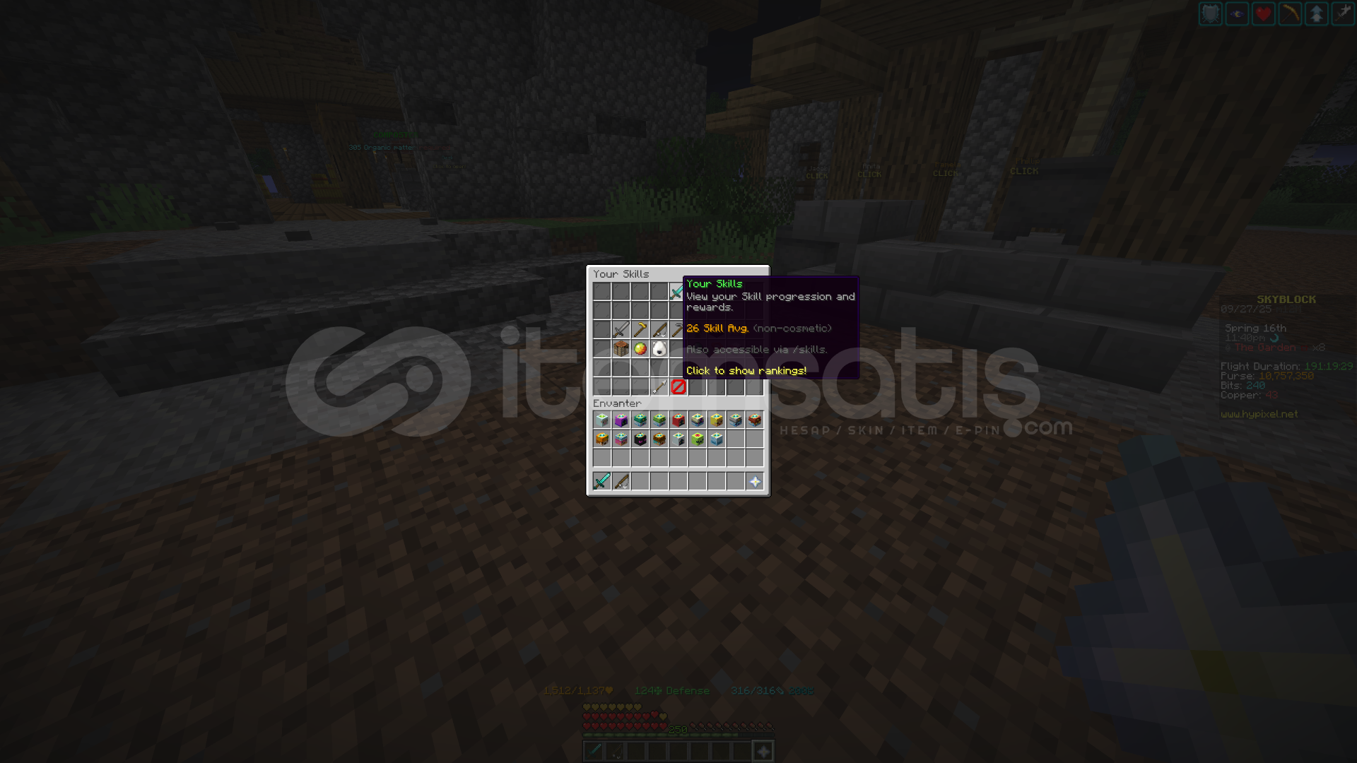 SKİLL AVARAGE 26: COMBAT 28- FARMİNG 50 - MİNİNG 29 - ALCHEMY 32- ENCHANTING 27 - FORAGİNG 13- FİSHİNG 8 SKILL AVARAGE SAHİP