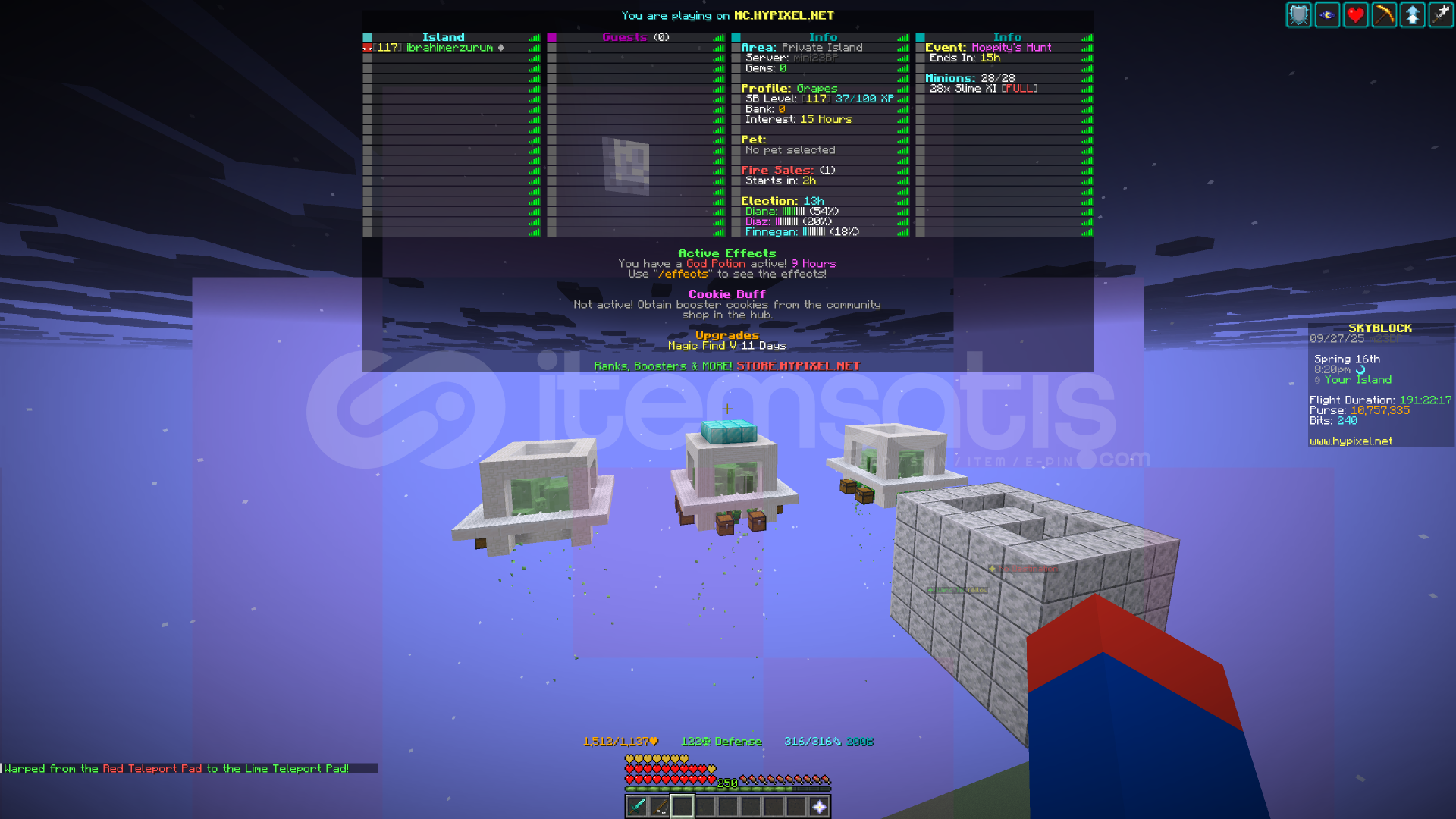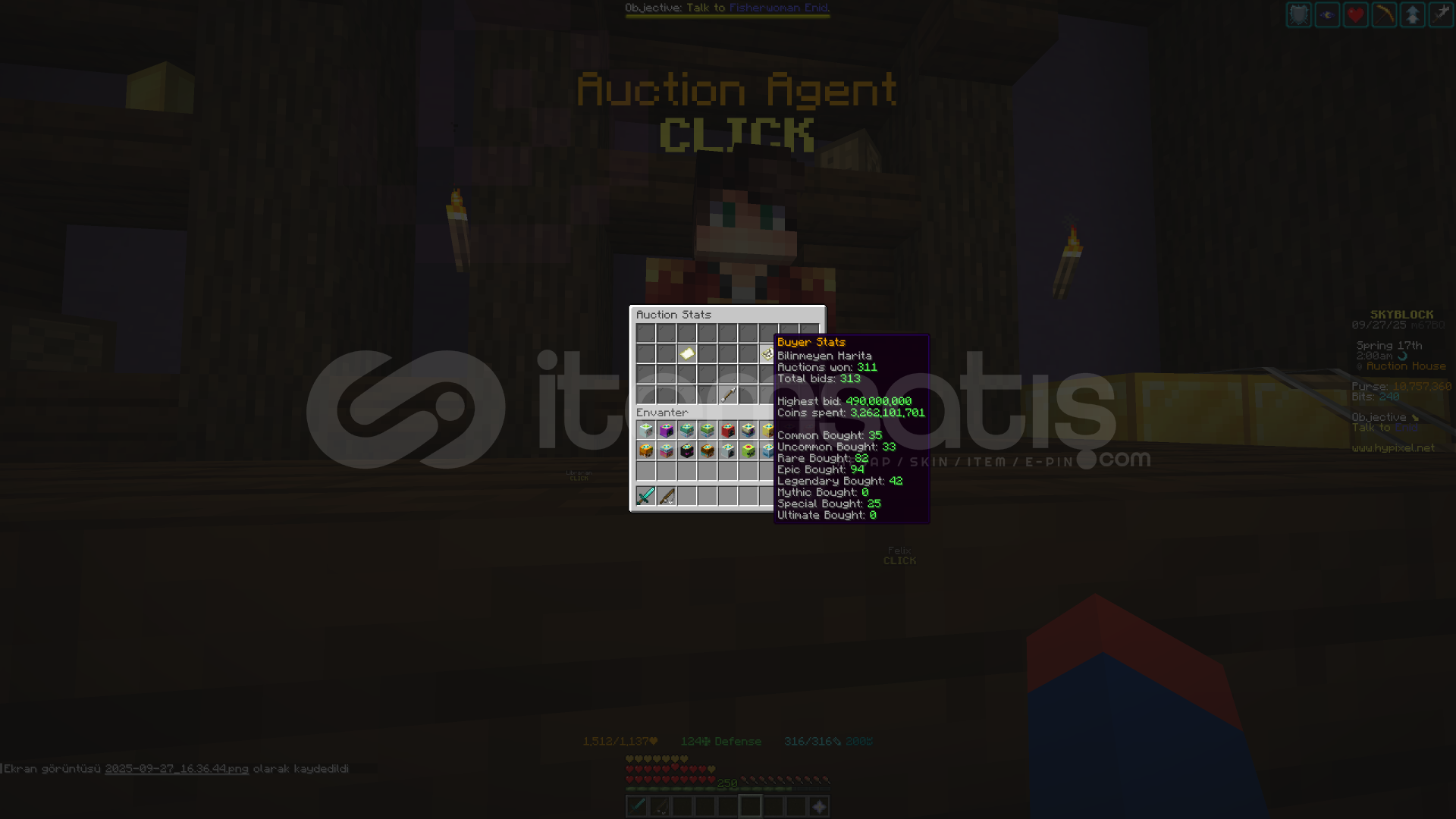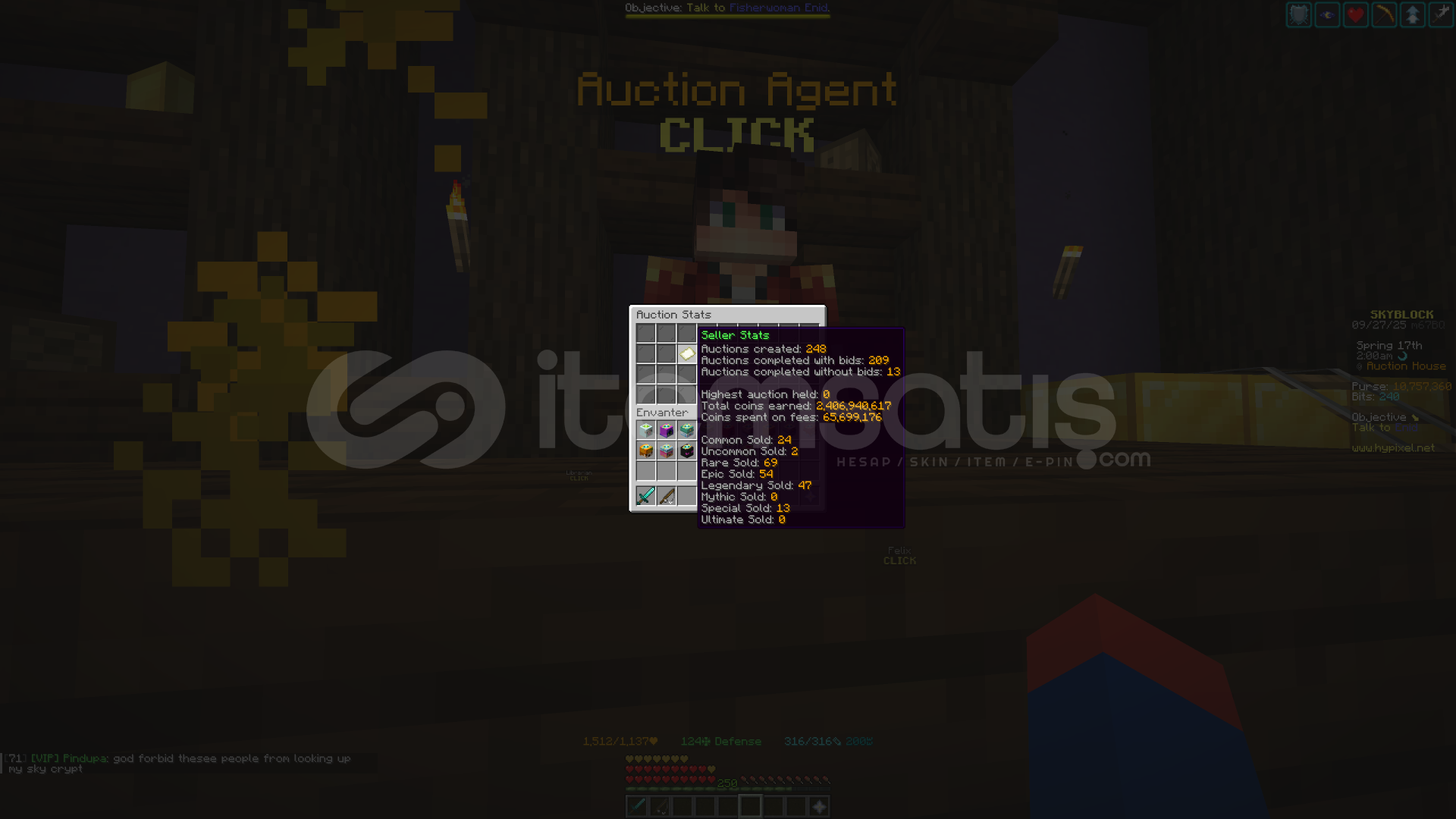 HESABIN ŞUAN DEĞERİ 2400-2900 TL ARASINDADIRHESAPTA 2 ADET PELERİN VAR HYPİXEL SUNUCUSUNDA SINIRSIZ (ÖMÜR BOYU) VİP RANK VARSKYBLOCK:HESAPTA COİN TİCARETİ YAPILABİLİR BAN ASLA YEMEZ28 ADET İÇİ FULL DOLU T11 SLİME MİNYON VARBİR SÜRÜ İTEM VE T11,T10 UĞRAŞIRSANIZ ÇOK GÜZEL COİNLER EDECEK MİNYONLAR VARGARDEN DA NETHERWART + MELON AFK FARM BUİLDİ VA...
